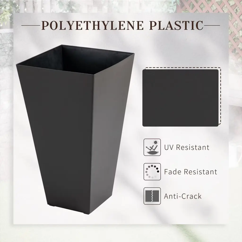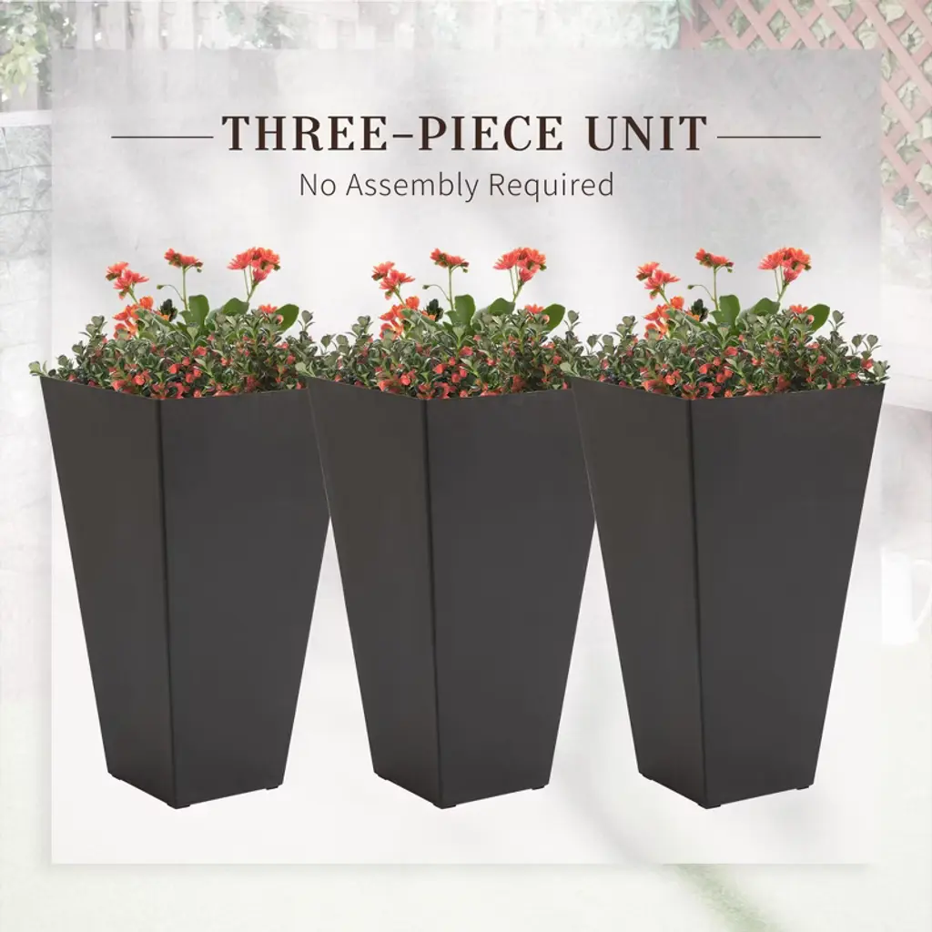 This versatile set features three durable, UV-resistant PP plastic planters with a sleek matte finish, suitable for both indoor and outdoor use. The self-draining design with removable plugs ensures proper water management, while the weatherproof construction (15.75"L x 15.75"W x 28"H) offers long-lasting durability without assembly. Perfect for homes, offices, patios, or gardens, these planters combine modern style with practical functionality.