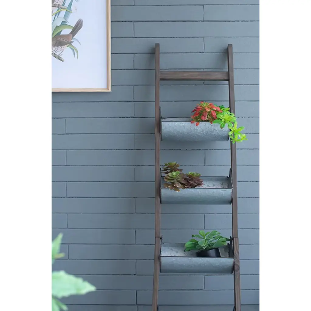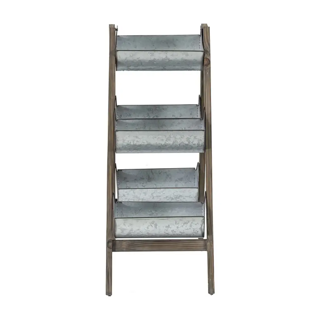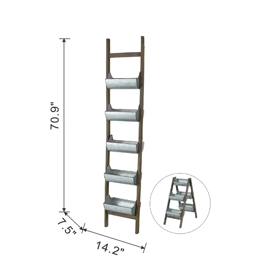 Maliang Foldable Reed Galvanized And Wood Ladder Planter 14.2" X 7.5" X 70.9"