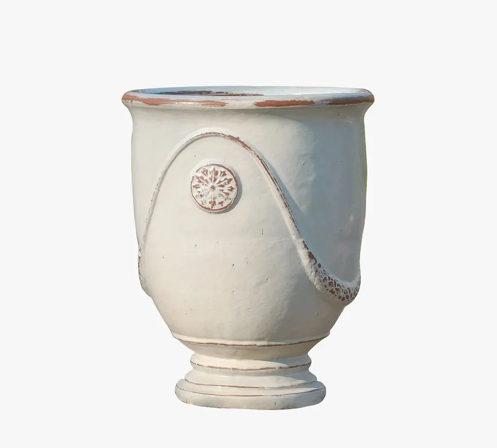 Anduze pots have been a signature of French nobility for centuries, bringing style and sophistication to any garden. Inspired by this traditional design, the Martine is handcrafted with a garland and medallion motif, finished with terracotta glaze. Each piece is unique, with slight variations in color and pattern.