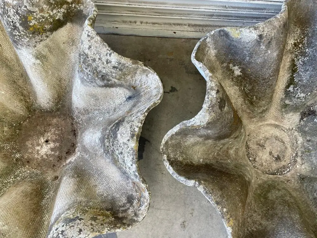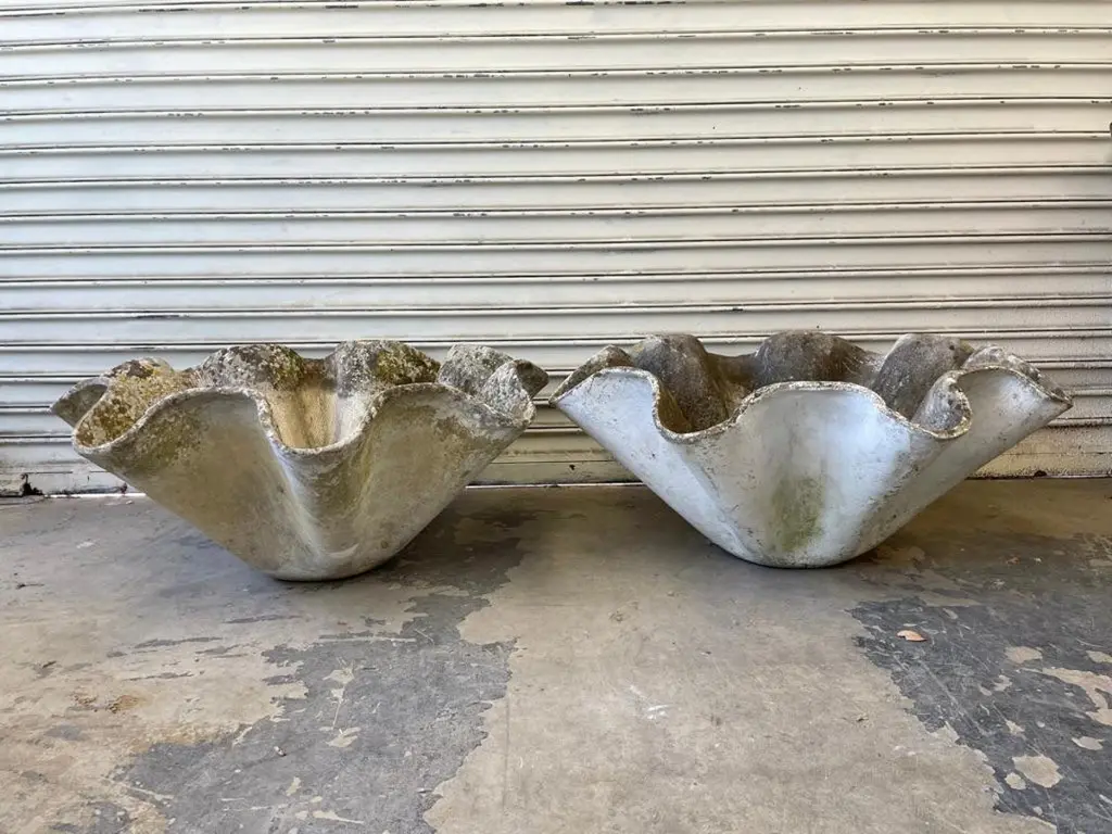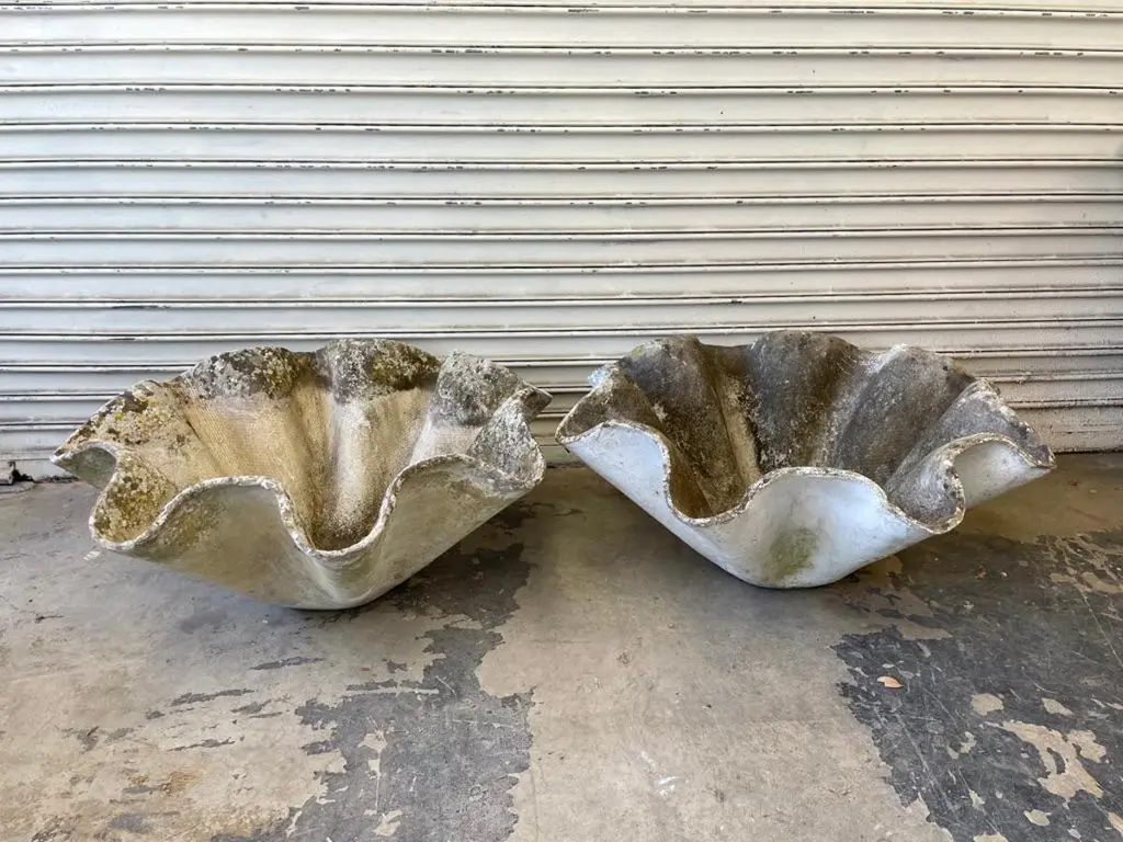 Massive sculptural biomorphic cement planter by Willy Guhl. Gorgeous planter for indoors or outside. Excellent patina. Multiples available. Priced individually.