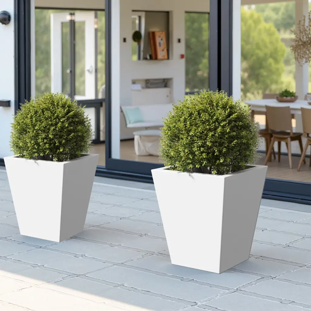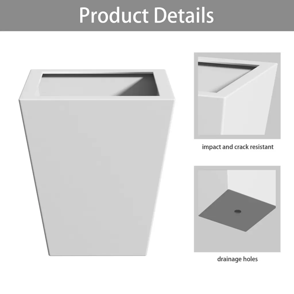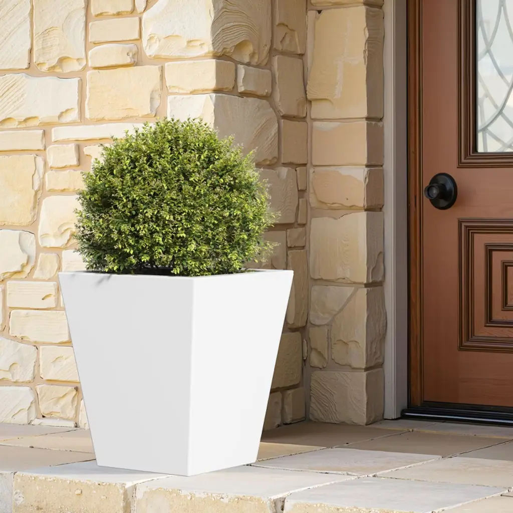The 18" H Tall Tapered Planter is a striking addition to any home or patio decor. Its burnished white finish adds a touch of elegance while complementing various interior and exterior styles, making it a perfect focal point in any setting.