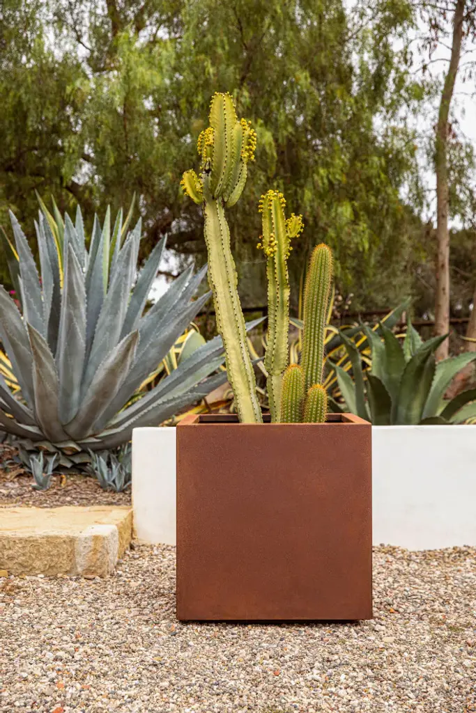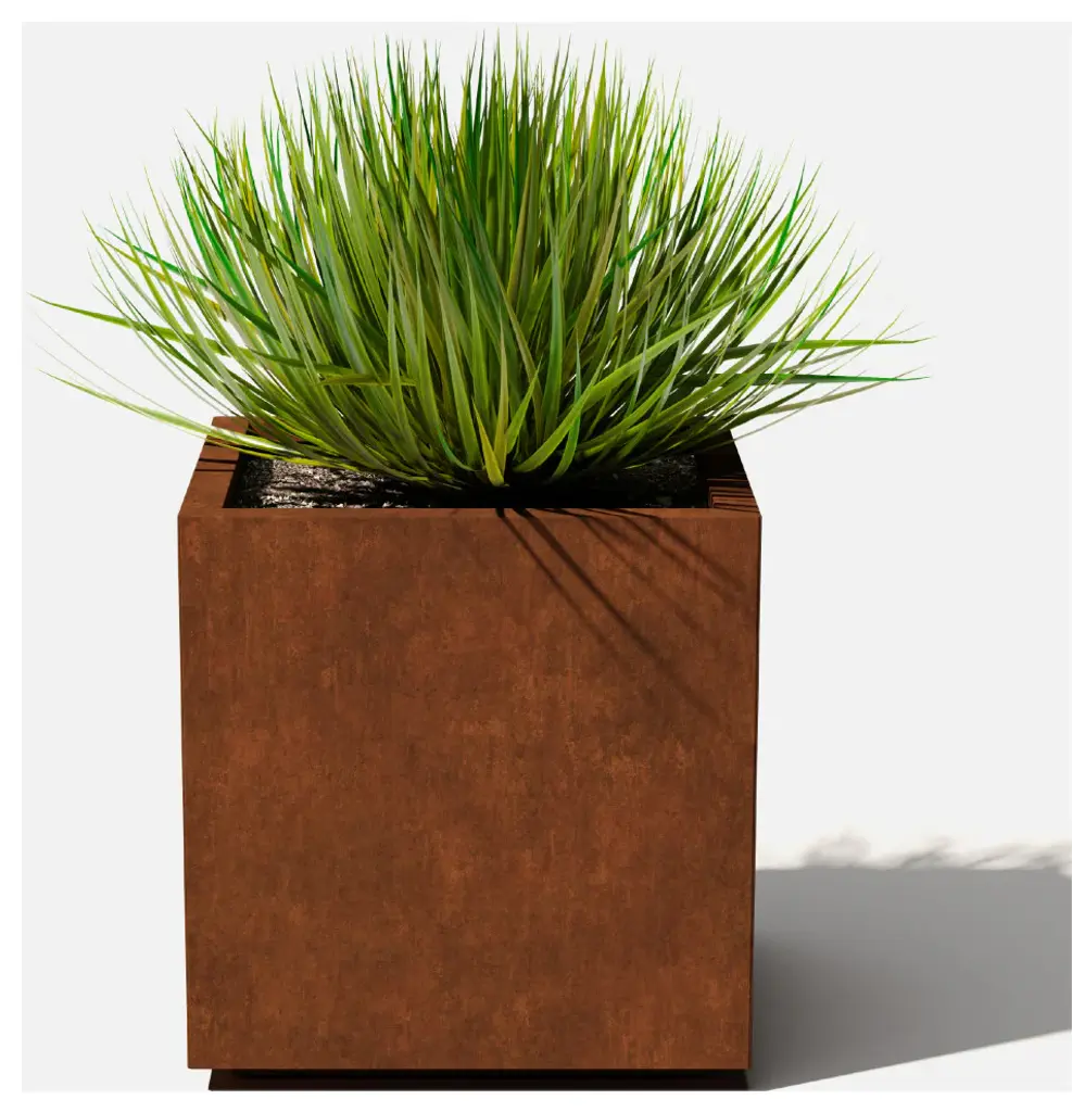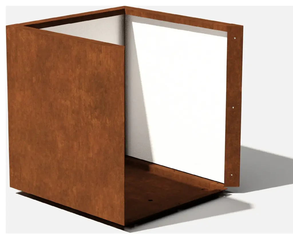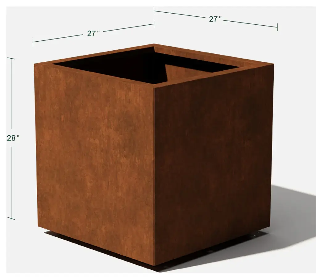Short and sweet, the Veradek Corten Steel Cube Planter develops a rich patina finish, adding charm and a pop of color to spaces like the front porch or patio. Its thick gauge corten steel construction ensures that rust develops on the surface of the planter ensuring the structural integrity of the planter body for years of use. In addition, all corten steel series planters are equipped with styrofoam insulation to help keep plants healthy in both hot and cold extremes. Veradek corten series planters are proudly designed in Canada so you can be confident that your planter will hold up against weather related cracking and splitting. With the ideal balance of design, structure and purpose, the Corten Steel Cube Planter will be the finishing touch to your outdoor project. During the initial rusting phase, rust will drip from the surface of the planter. Veradek recommends placing an appropriate protective barrier between the planter and ground to ensure no stains are left behind.
