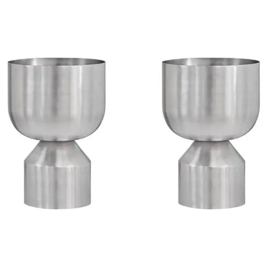 Set of 2 midi ada planters by llot llov dimensions: ø230mm x 370mm materials: brushed raw aluminium ada planter was made from aluminium in a metal spinning process. It is meant to be the new home for plants with roots. There are four types, all of which can be filled from both sides, allowing for endless combinations of cacti and palm trees. The new edition is ready to order in brushed aluminium. The unpainted surface shows the raw material. Each plant pot is hand-turned and hand-brushed and is reminiscent of an untreated industrial piece. The slightly reflective metal surface creates a beautiful contrast to the fresh green leaves. The new planter edition is suitable for indoor and outdoor use. For exterior use, the rubber plug should be removed to prevent rainwater from accumulating. The surface is not lacquered, so the material ages naturally but is resistant to corrosion. Ada planters like the sun as well as shade; they most enjoy living in larger groups. Behind the llot llov brand is the studio for product and interior design and the producer of furniture, objects, lighting, and surfaces. Since their foundation in 2006 by ania bauer and jacob brinck, the two berlin-based author designers have established themselves internationally. One of their recognizable features is the reinterpretation of traditional arts and crafts brought into a contemporary design context. An example of this is osis, an innovative surface finish using salt crystals and colour pigments on wood, with which they won the german materials prize, among other awards. They use osis as well as the terrazzo glacier, which was introduced in 2018 and is made of nail polish bottles, for their own designs, but they also supply interior designers worldwide. Glacier, like other designs, upcycles high-quality materials, such as those from the cosmetics industry. Their objects are manufactured in europe, often in social workshops, and distributed directly by llot llov. Llot llov produces exclusive furniture and objects for private or corporate clients and also manages interior design projects such as hotels or offices. In addition, the duo has been running a shop for fashion and accessories in berlin-mitte with baerck since 2007.