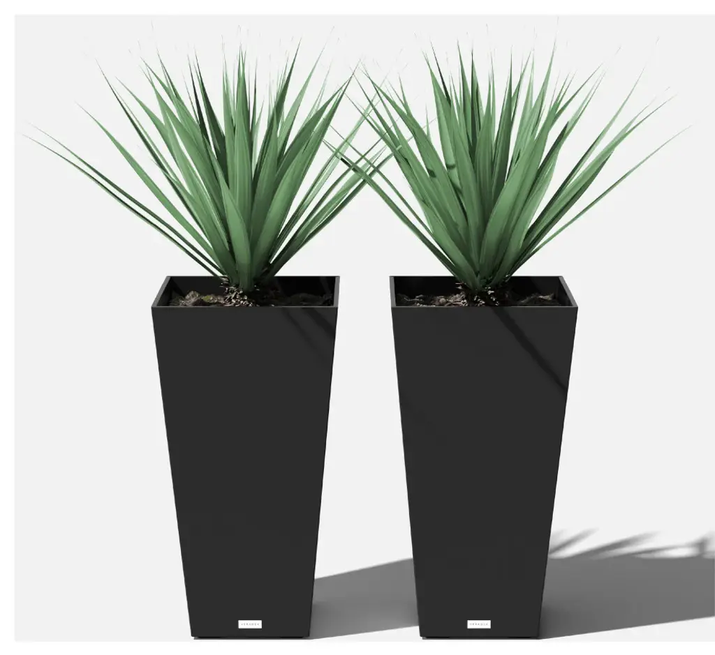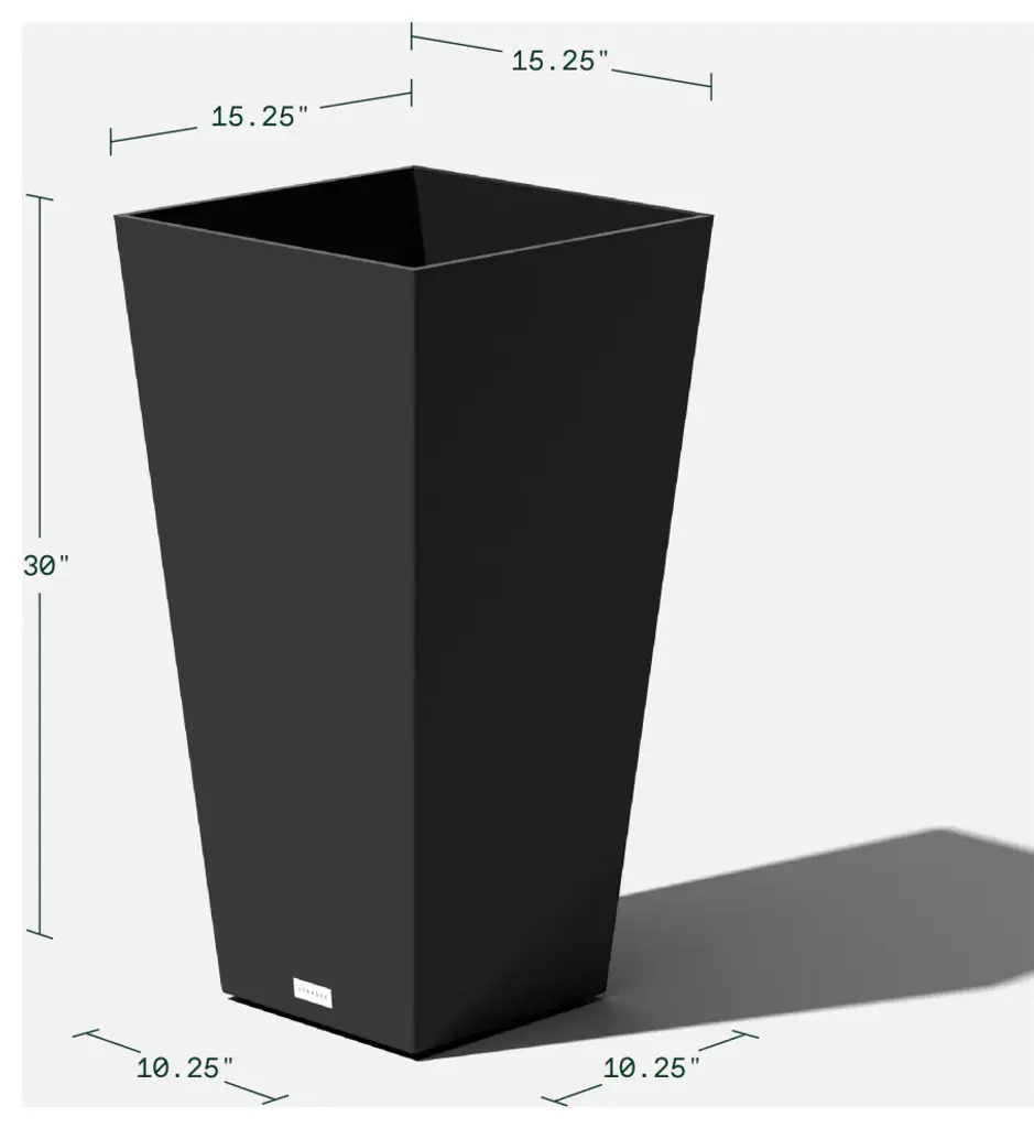 Midland Tall Square Planter, Black, 30'', 2 Pack
