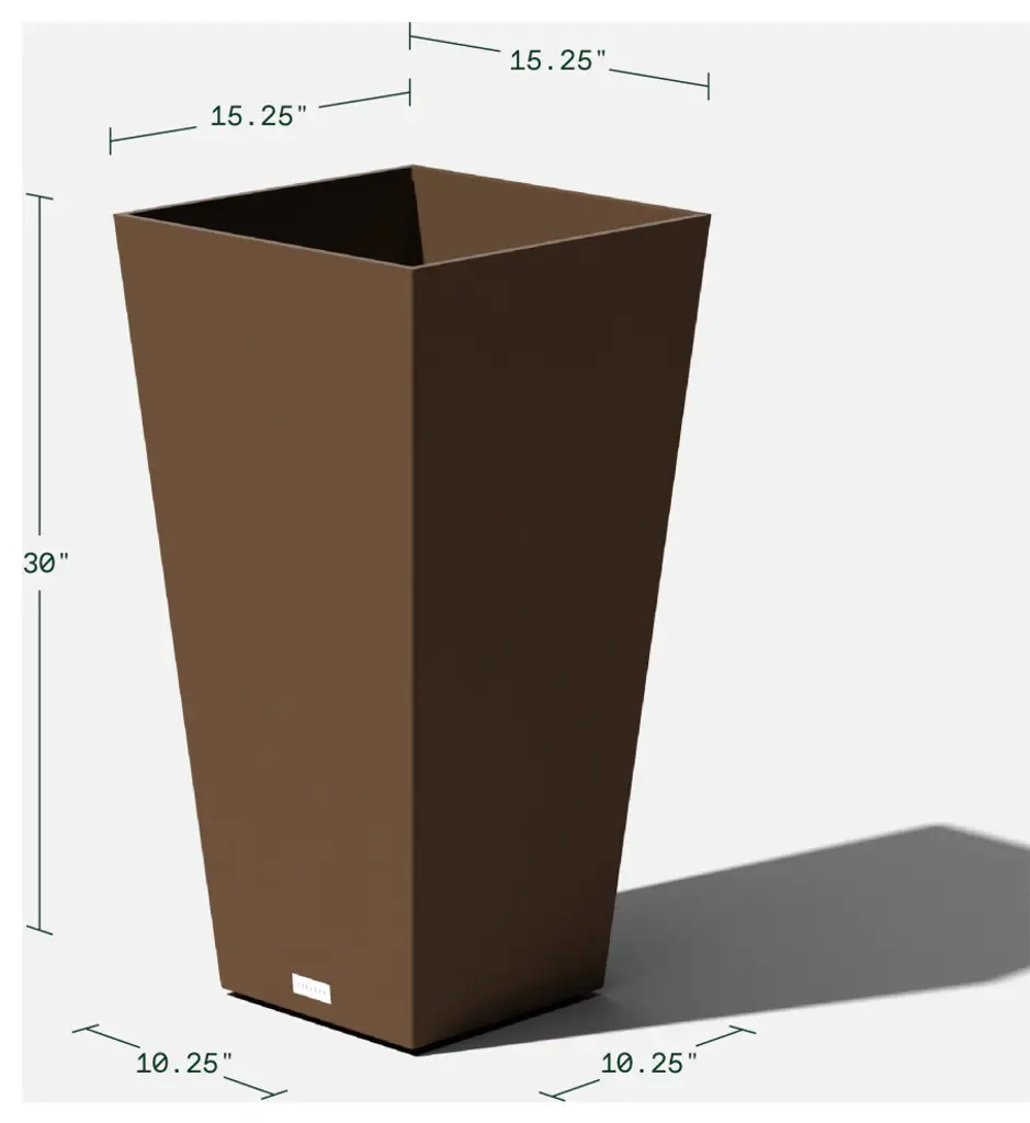 Midland Tall Square Planter, Espresso, 30'', 2 Pack
