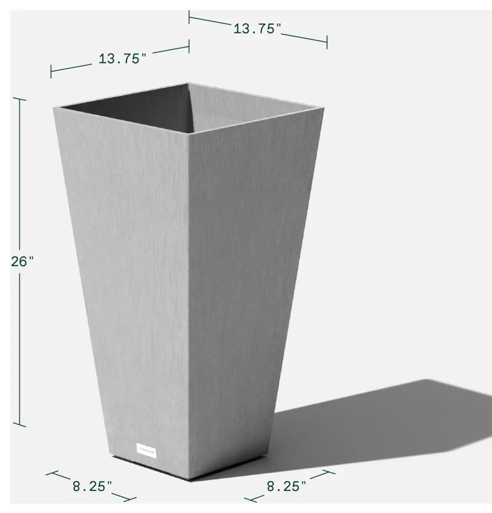 Midland Tall Square Planter, Gray, 26'', 1 Pack