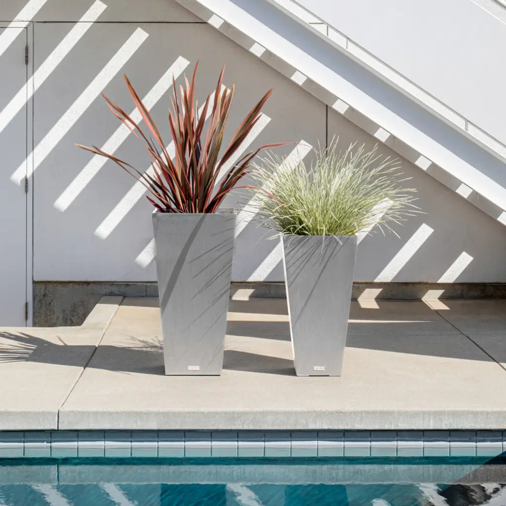 The Veradek Midland Planter, with its perfect balance of design, durability, and convenience, featuring a unique, simple, sleek, and modern look in all settings. Featuring an elegant flat finish and a modern, sleek square bowl design, the Midland is ideal as a patio accent or flanked along an entrance wall. from high-density plastic (HDPE), these Veradek planters are extremely durable and designed to withstand the elements - winter or summer. Midland planters come equipped with a removable shelf - this provides the user the versatility of fully filling the planter with soil or using an interchangeable plant insert. These planters are frost resistant for colder climates with flexible, impact resistant, and sturdy yet lightweight design, making it perfect for your indoor and outdoor decor.