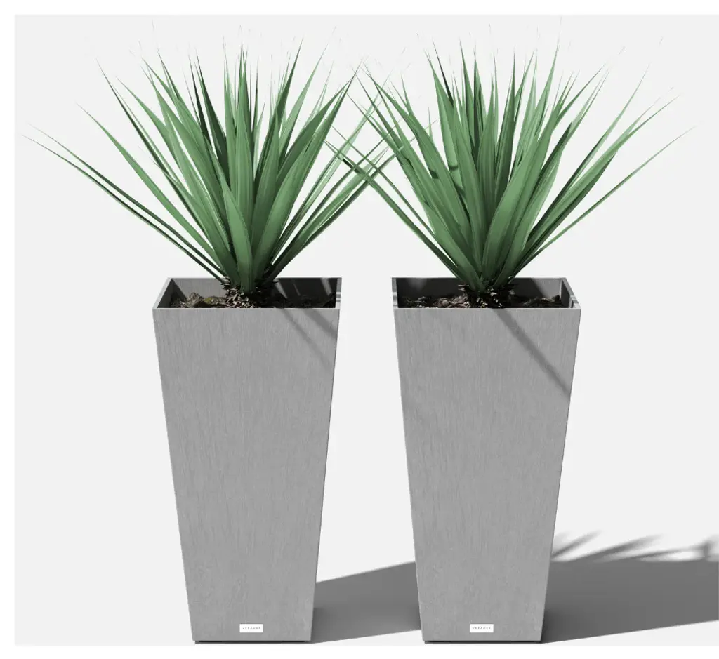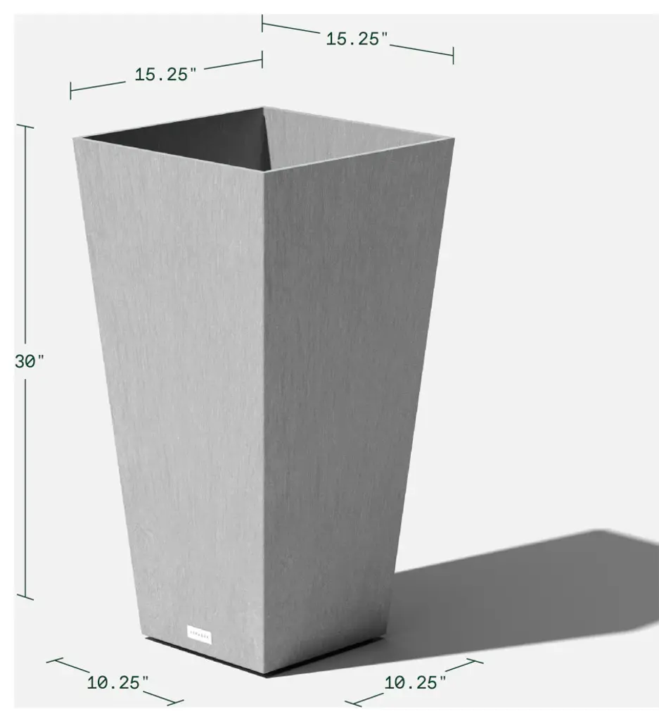 Midland Tall Square Planter, Gray, 30'', 2 Pack