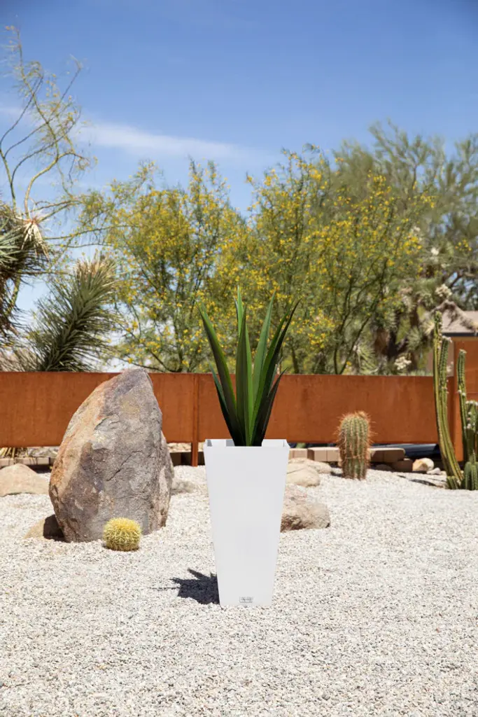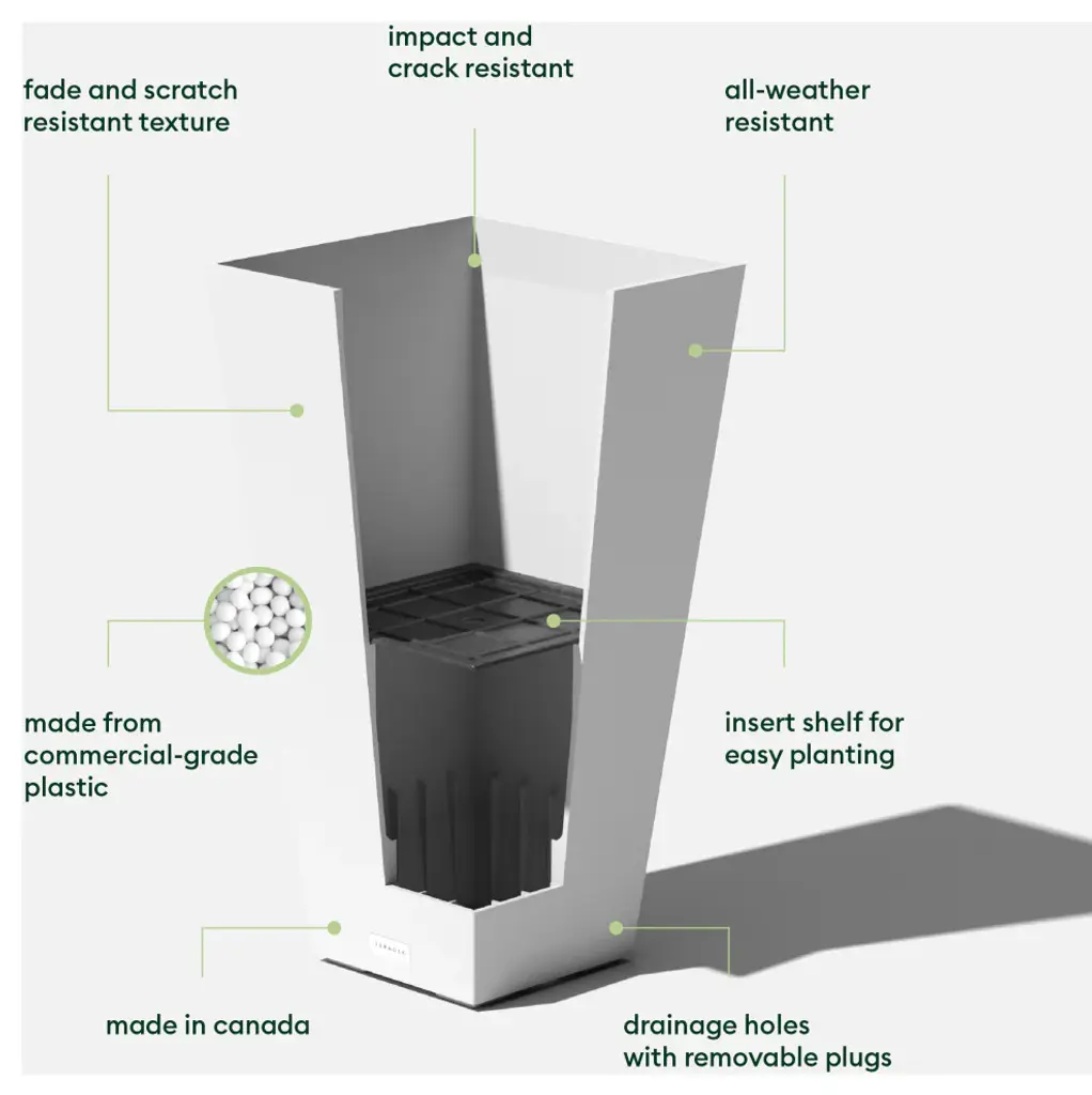 The Veradek Midland Planter, with its perfect balance of design, durability, and convenience, featuring a unique, simple, sleek, and modern look in all settings. Featuring an elegant flat finish and a modern, sleek square bowl design, the Midland is ideal as a patio accent or flanked along an entrance wall. from high-density plastic (HDPE), these Veradek planters are extremely durable and designed to withstand the elements - winter or summer. Midland planters come equipped with a removable shelf - this provides the user the versatility of fully filling the planter with soil or using an interchangeable plant insert. These planters are frost resistant for colder climates with flexible, impact resistant, and sturdy yet lightweight design, making it perfect for your indoor and outdoor decor.