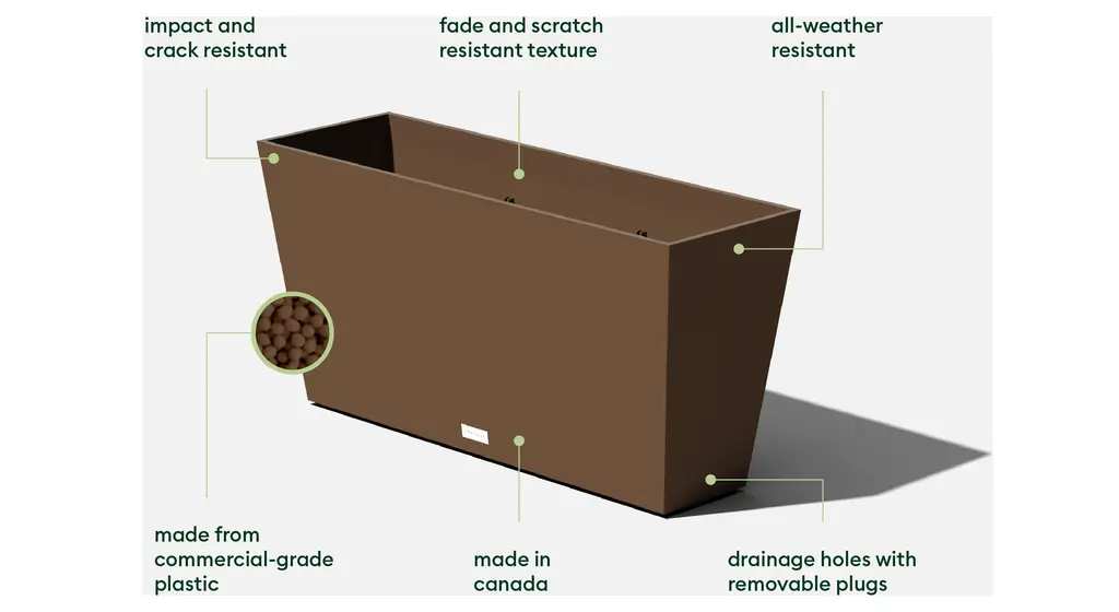 Whether it's your room, your patio or the entrance wall of your home, the Veradek Midori Planter with its perfect balance of design, durability, and convenience features a subtle marbled finish and a modern trough tapered design which is the perfect fit to create privacy, be used as a room separator or fill out empty space. It has a unique finish, made from high grade polyethylene, which gives the planter its flexible, impact and crack resistant qualities. This lightweight pot is designed with patented plastic composite material to provide durability and withstand any kind of weather, specifically colder temperatures due to its frost resistant qualities and is specially treated to minimize fading. The Veradek outdoor patio and indoor decorative planters feature an optional drainage hole to help drain out water when used outdoors.