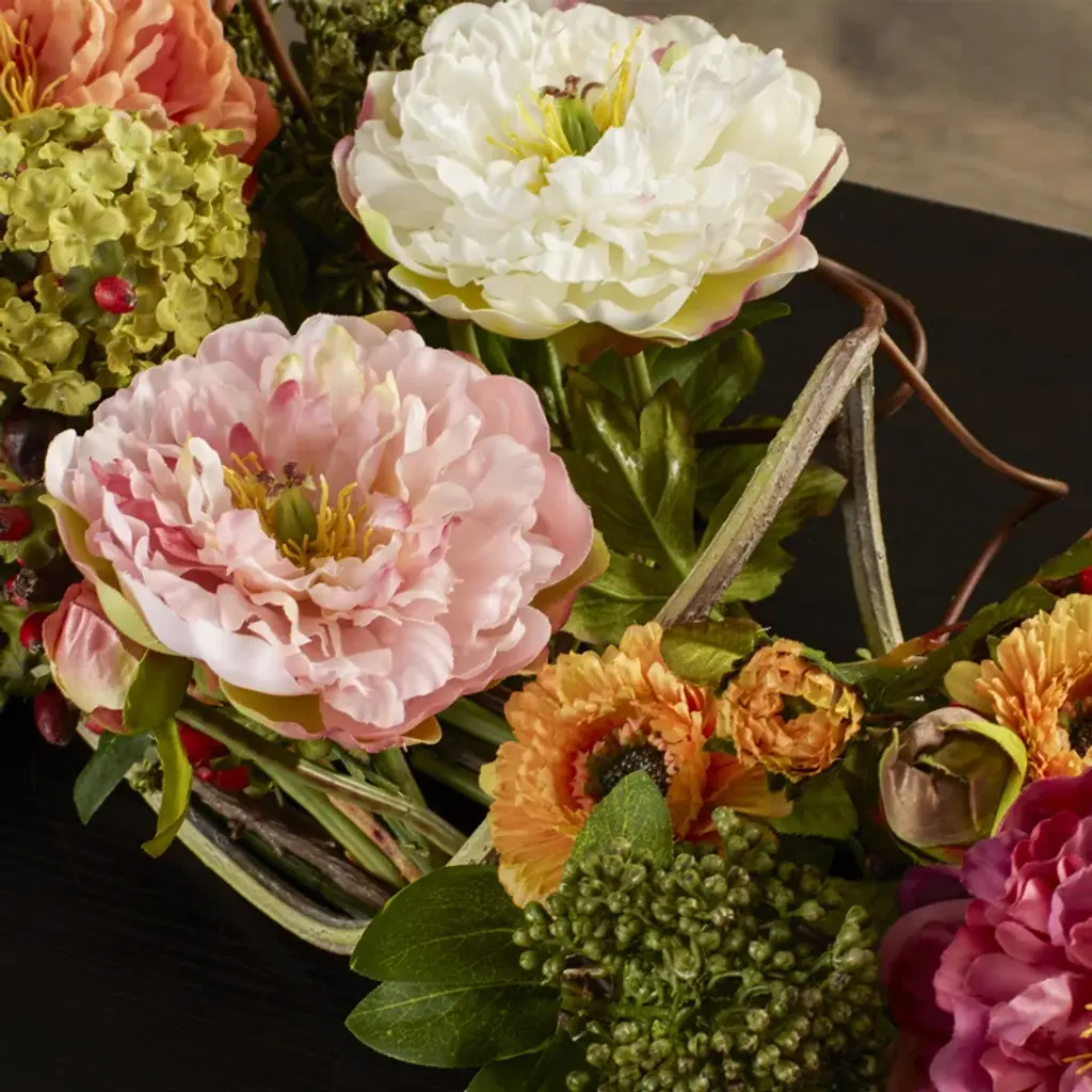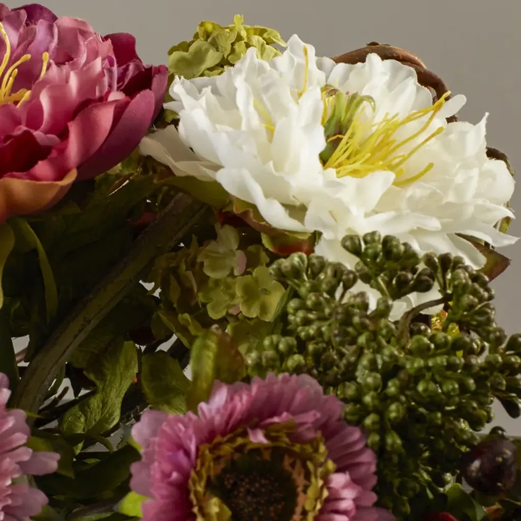 Add a colorful touch to your tabletops with this eye-catching silk mixed peony arrangement. Pair it with white lace linens for an elegant tablescape display, or set it on the entryway console for a dash of garden style.