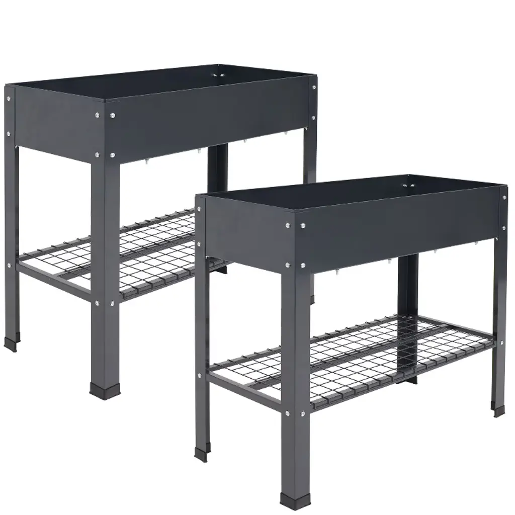 Using drainage system to create an anti-soaking layer in the planting groove, excess water will flow to the anti-soaking layer, creating space for root to absorb oxygen & preventing waterlogged soil and root rot from overwatering or heavy rainfall. Switchable drainage hole, you can drain water at any time.It can be used indoors and outdoors, garden, backyard, balconies, courtyards, patio, porch and other places, and can grow peppers tomatoes, lettuce, beets, green onion, mint, strawberries, herbs, flowers, and other fruit & vegetables plants.Ergonomic height at waist level design removes the need for bending or kneeling, preserving your back and knees£¬ Equipped with 2 wheels and armrests, can be easily moved to any place after lifting the armrest.4 high-strength metal legs, which can carry more than 200 pounds. With a storage shelf, you can store planting tools. The frame of the groove are designed with sealing edge and 4 curved corners can avoid hand cutting.