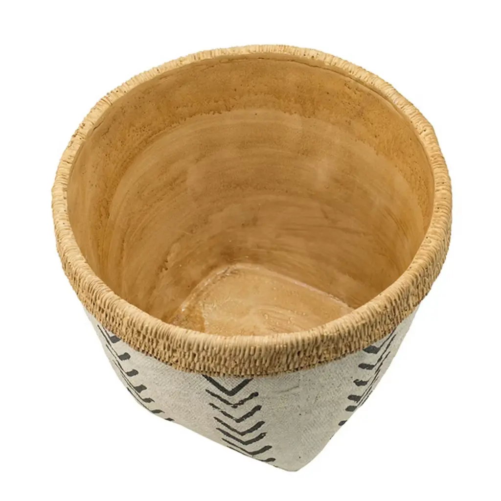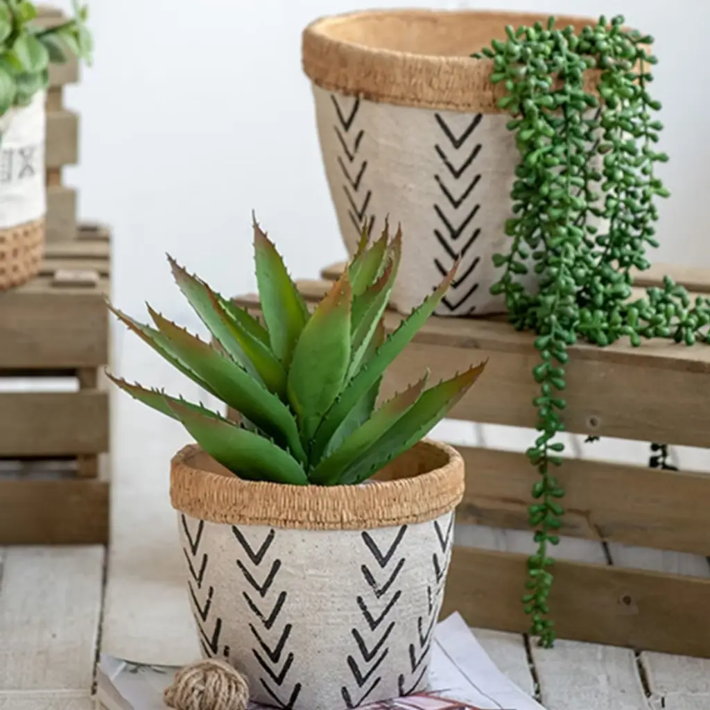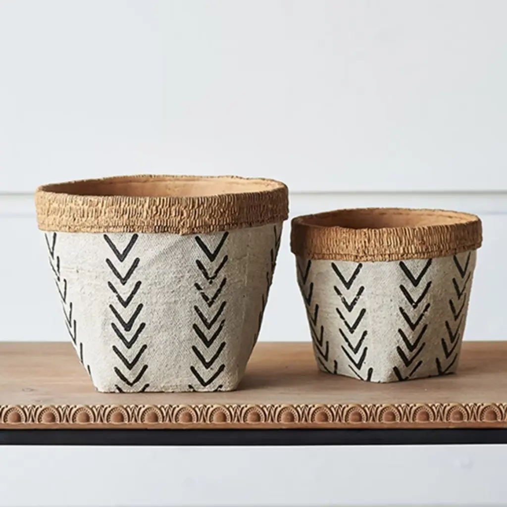 Add texture and sophistication to your patio or indoor garden with this set of 2 cement planters, featuring a stylish white and brown V-pattern design. Crafted from sturdy cement for lasting durability, these planters bring a modern rustic vibe to any space. The contrasting tones and geometric etching create eye-catching appeal, while the clean cylindrical shape works well with a variety of plant types—from succulents to ferns. Perfect for tabletops, entryways, or garden corners, these versatile planters combine form and function beautifully.