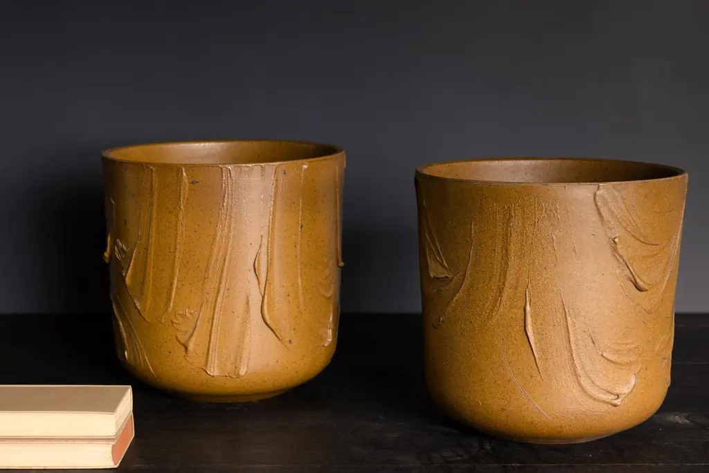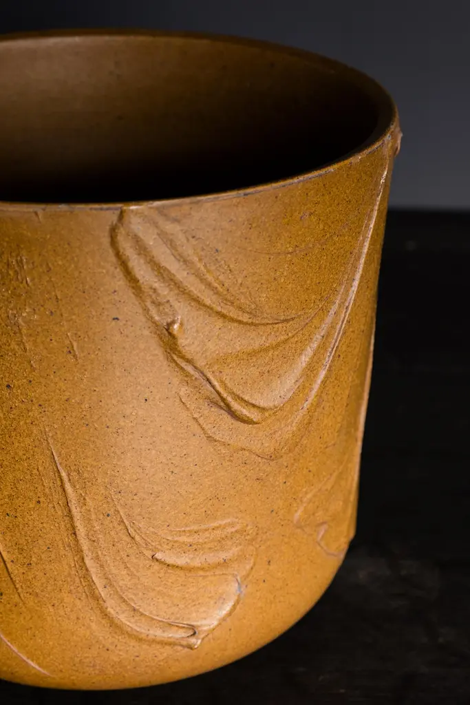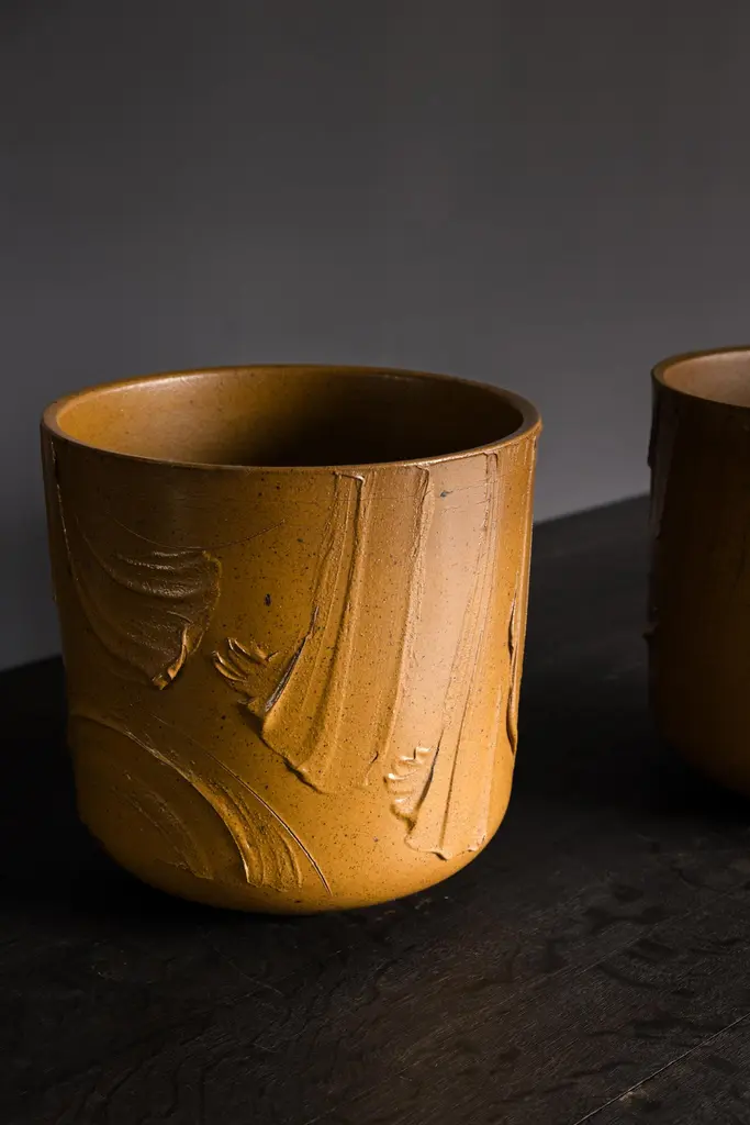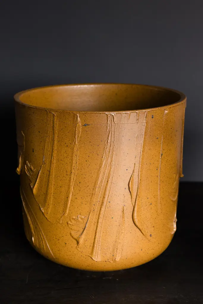 Model 4105 "Expressive" Planters by David Cressey for Architectural Pottery Pro/Artisan Collection, c. 1960's, USAGlazed Golden OchreH 16.75" x D 16.75"FDV11245Wear consistent with age and use. Two drainage holes.