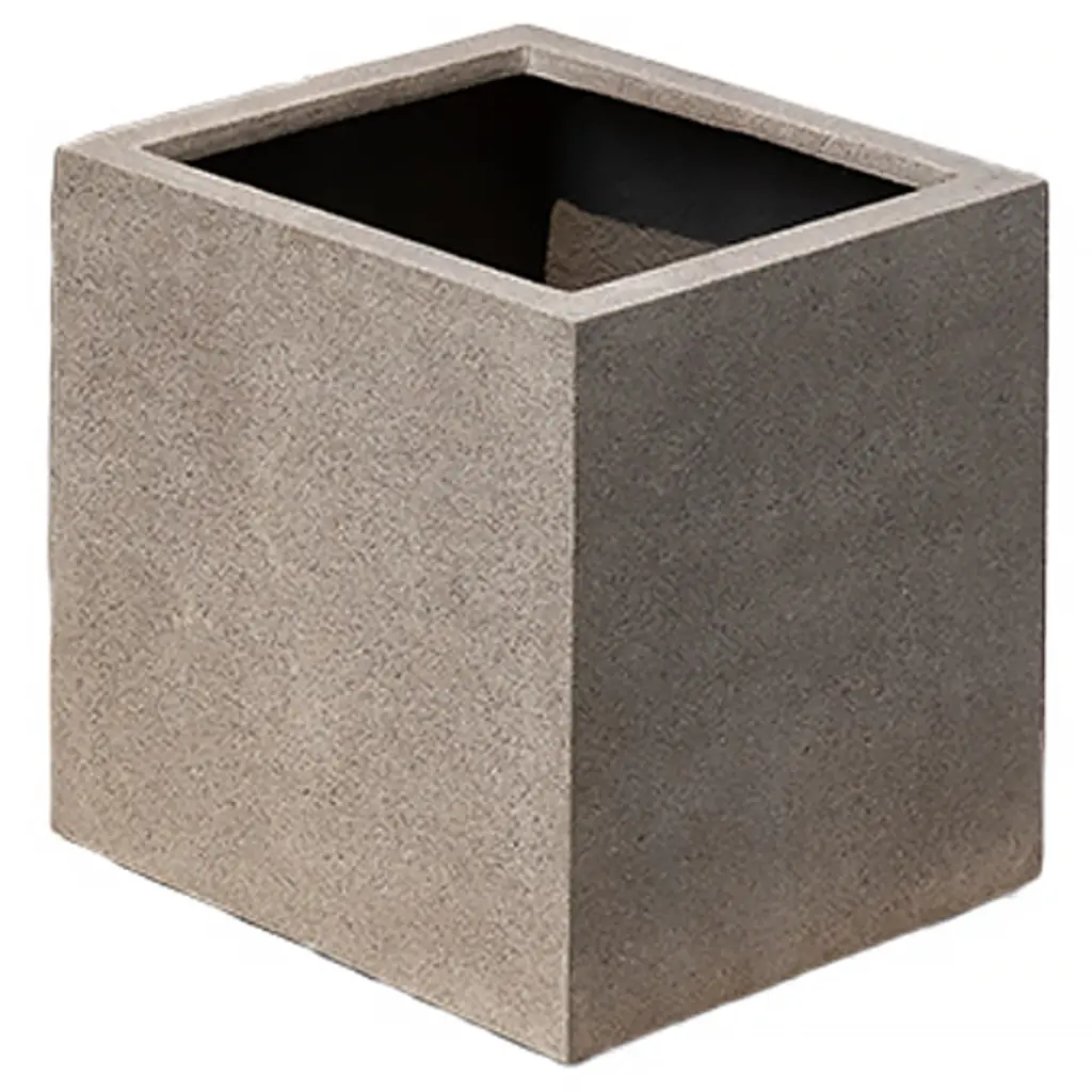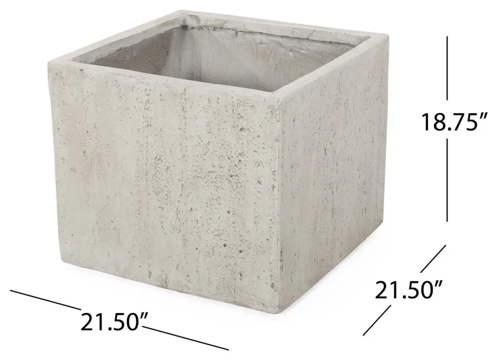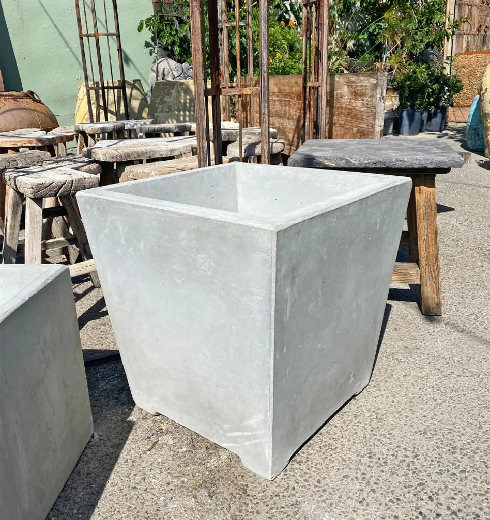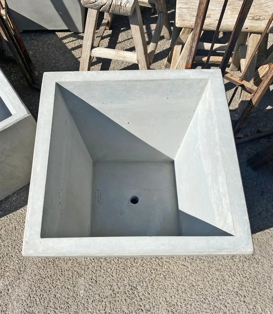 Outdoor modern square cement planter box. Includes drainage hole on bottom. Each planter will have slight variations in natural tones, textures, and imperfections.