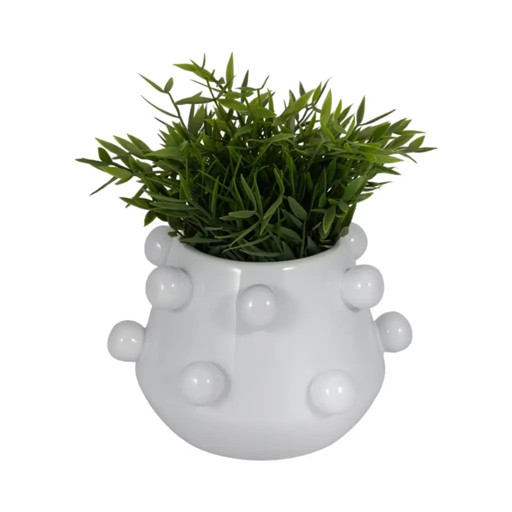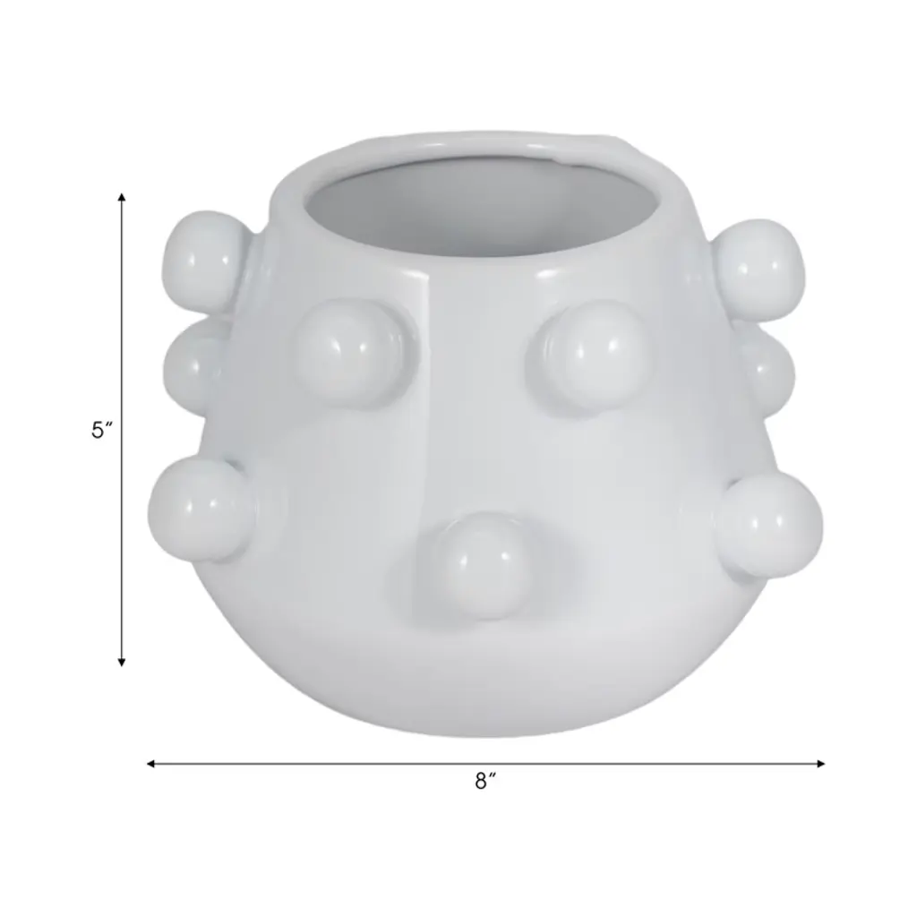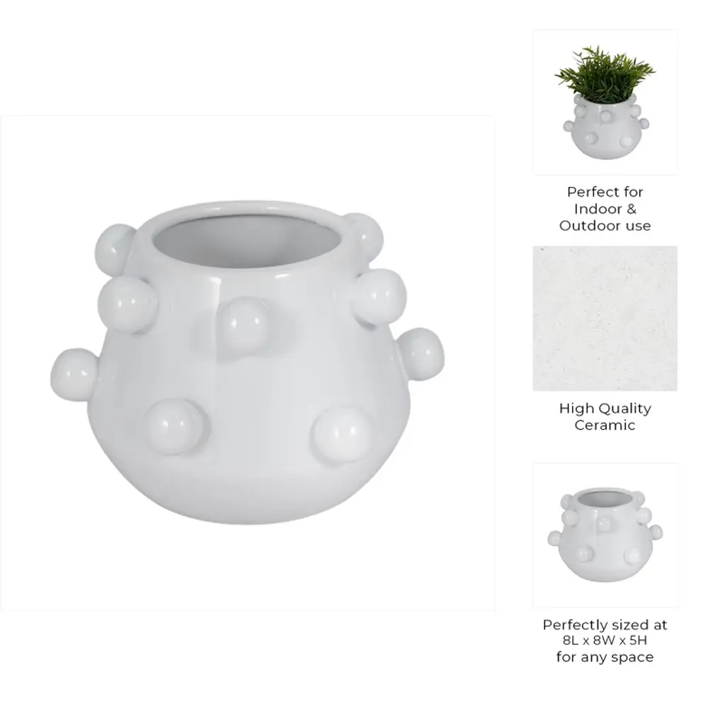 Modern Ceramic Planter With Textured Bubble Design, Ceramic Indoor & Outdoor Decorative Pot For Home & Garden - 5" White