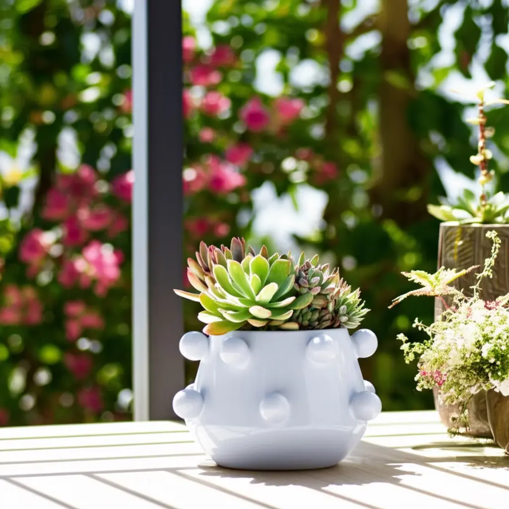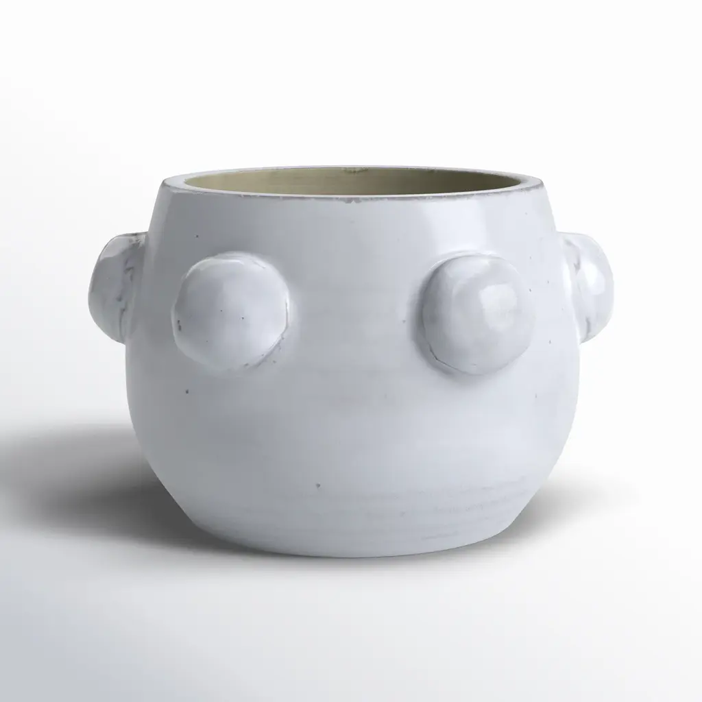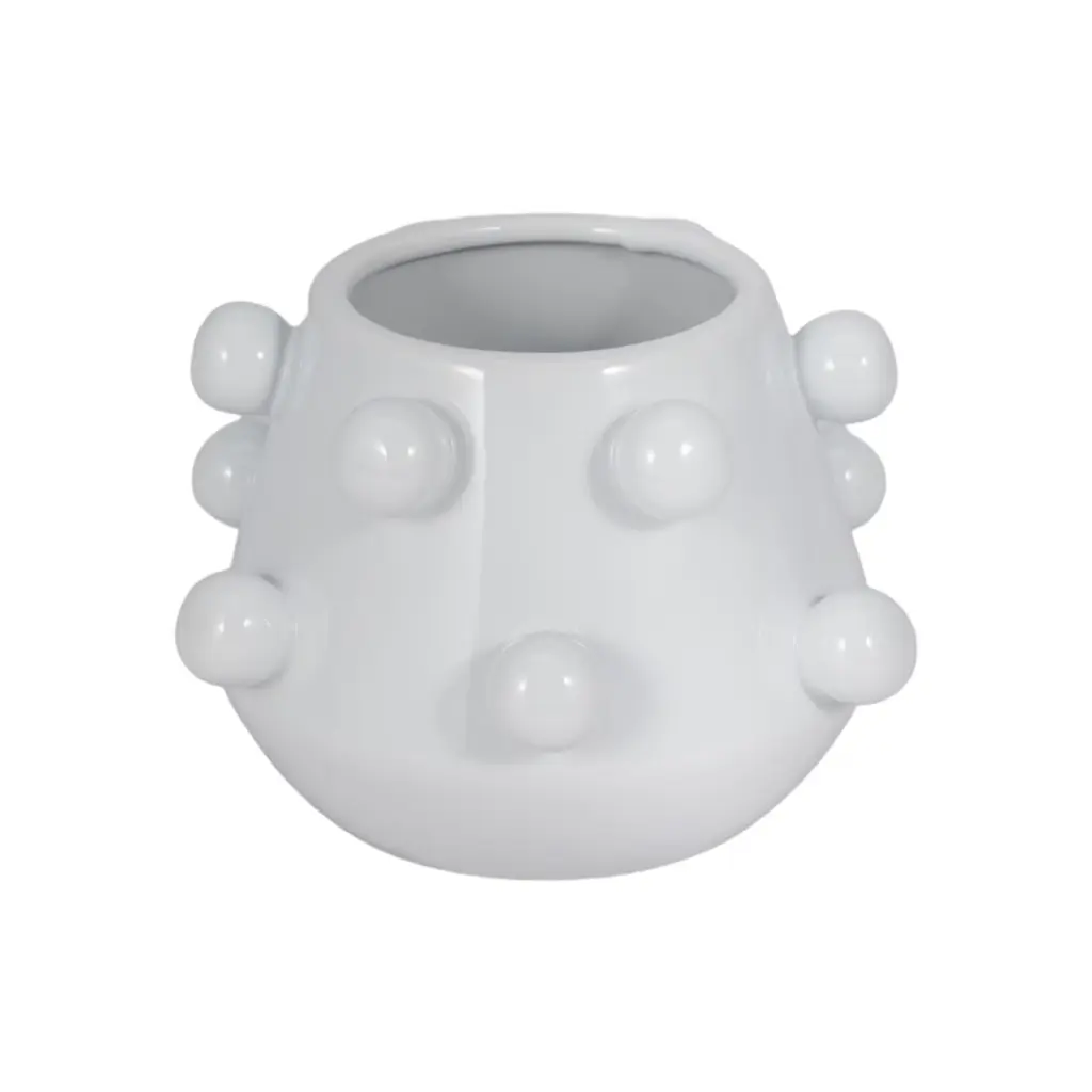 Modern Ceramic Planter With Textured Bubble Design, Ceramic Indoor & Outdoor Decorative Pot For Home & Garden - 5" White