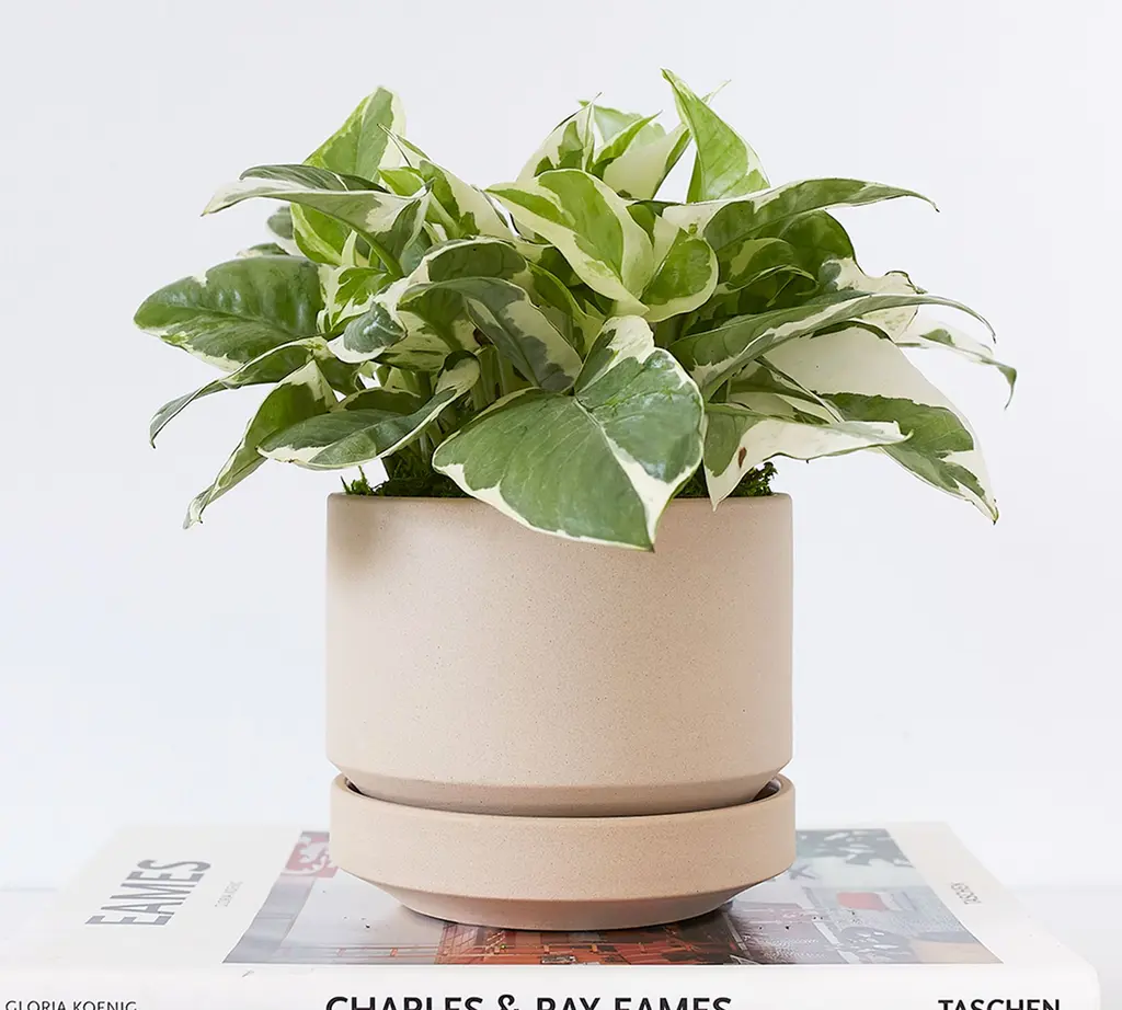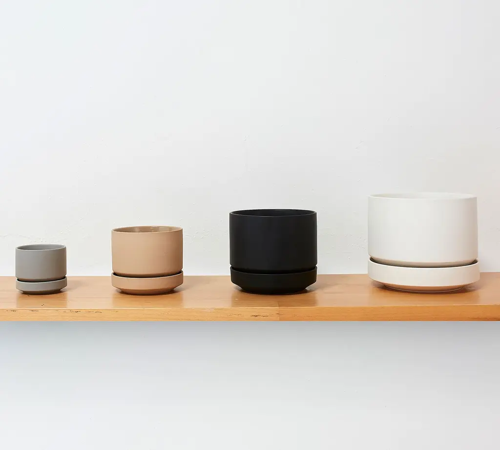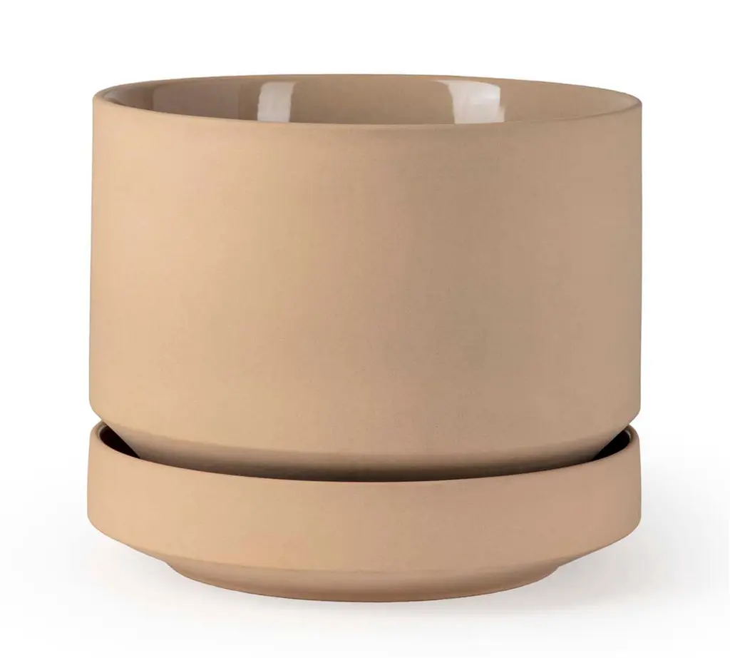 Take your houseplant style up a notch with these sleek, modern ceramic planters. Designed with a deep saucer to protect your surfaces and create stylish dimension, the oatmeal finish really lets your foliage pop.