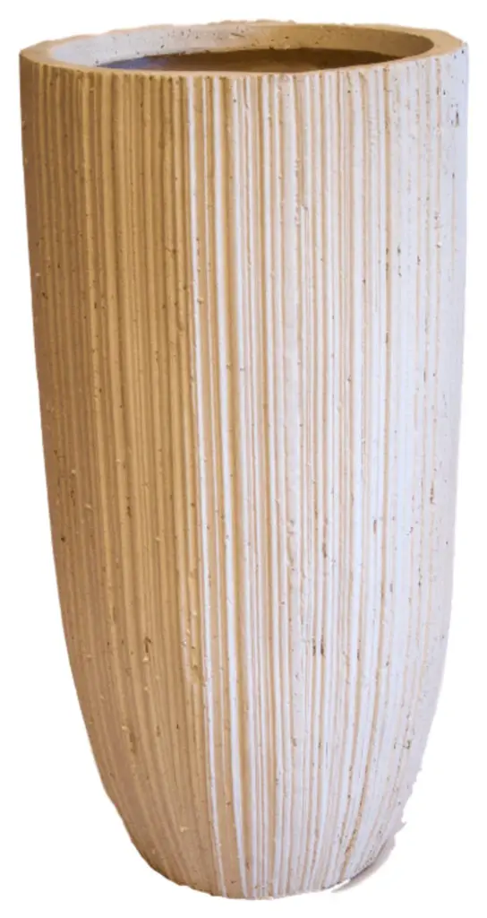Lightweight and durable ribbed concrete planter with a decidedly urban vibe. For indoor or outdoor use. Drainage holes can be easily drilled if necessary.