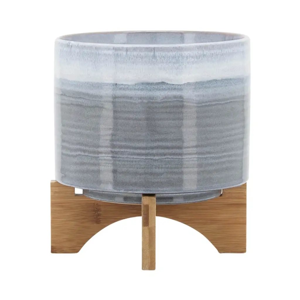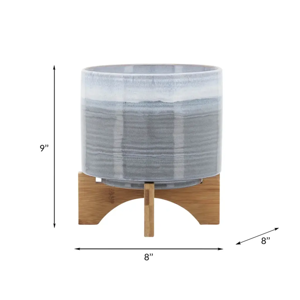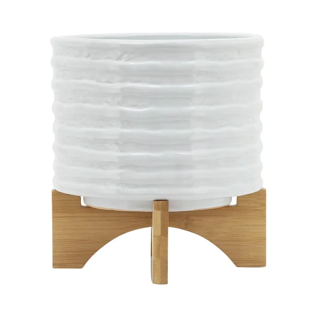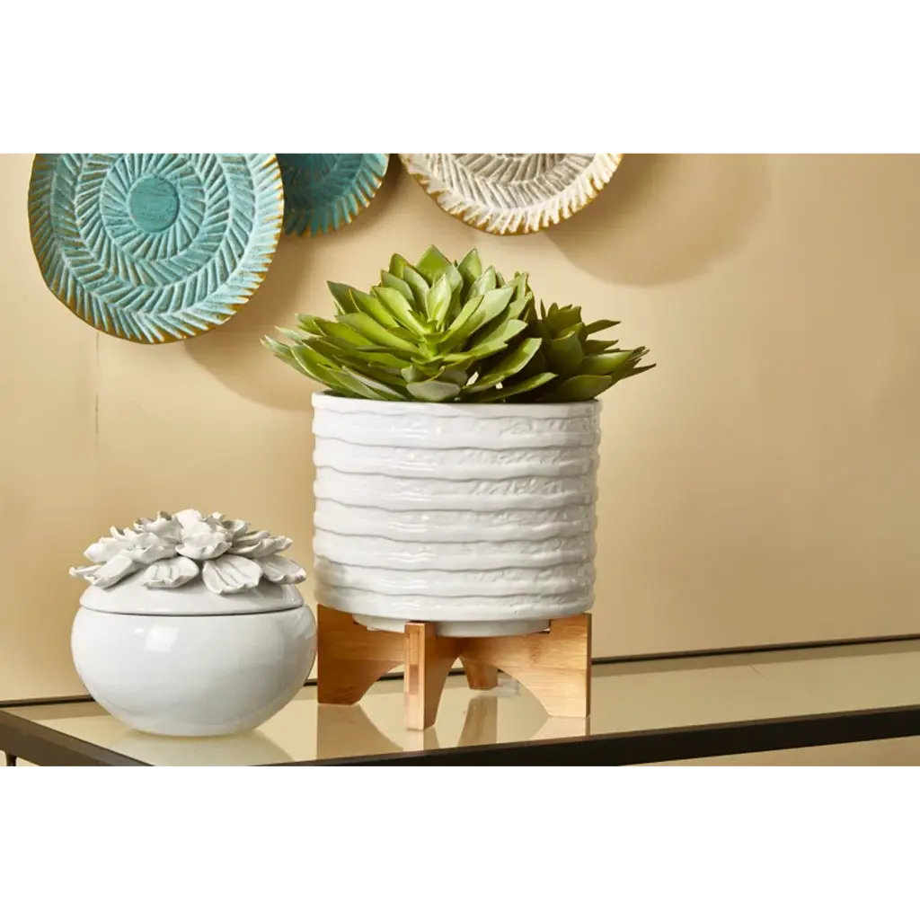 Modern Textured Ceramic Planter With Stand Indoor Outdoor
