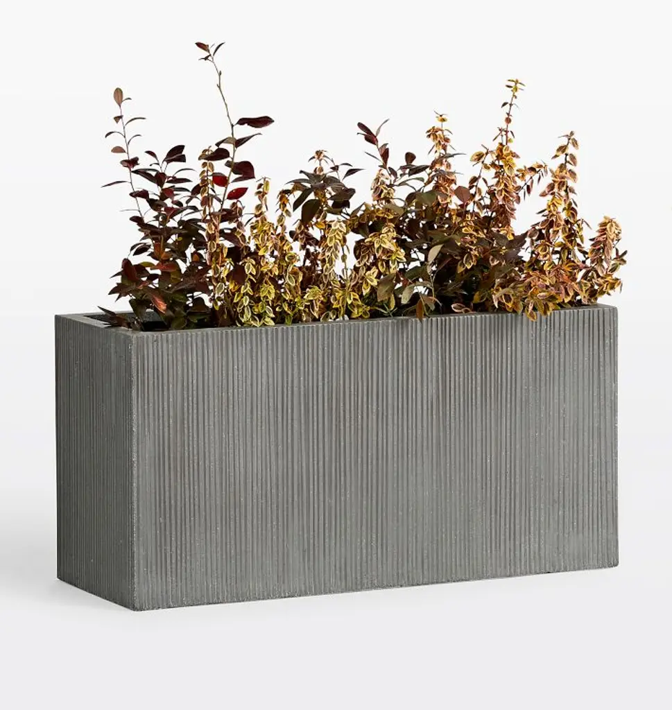 Lightweight and frost-proof, our Modern Textured Planter Collection adds texture to outdoor areas. Made from lightweight ficonstone, this all-weather collection comes in multiple shapes and sizes. Details You'll Appreciate Lightweight ficonstone withstands cold weather Product Specifications Ficonstone: 50% sand, 41% cement, 6% fiberglass, 3% other Drainage hole with rubber plug included Imported