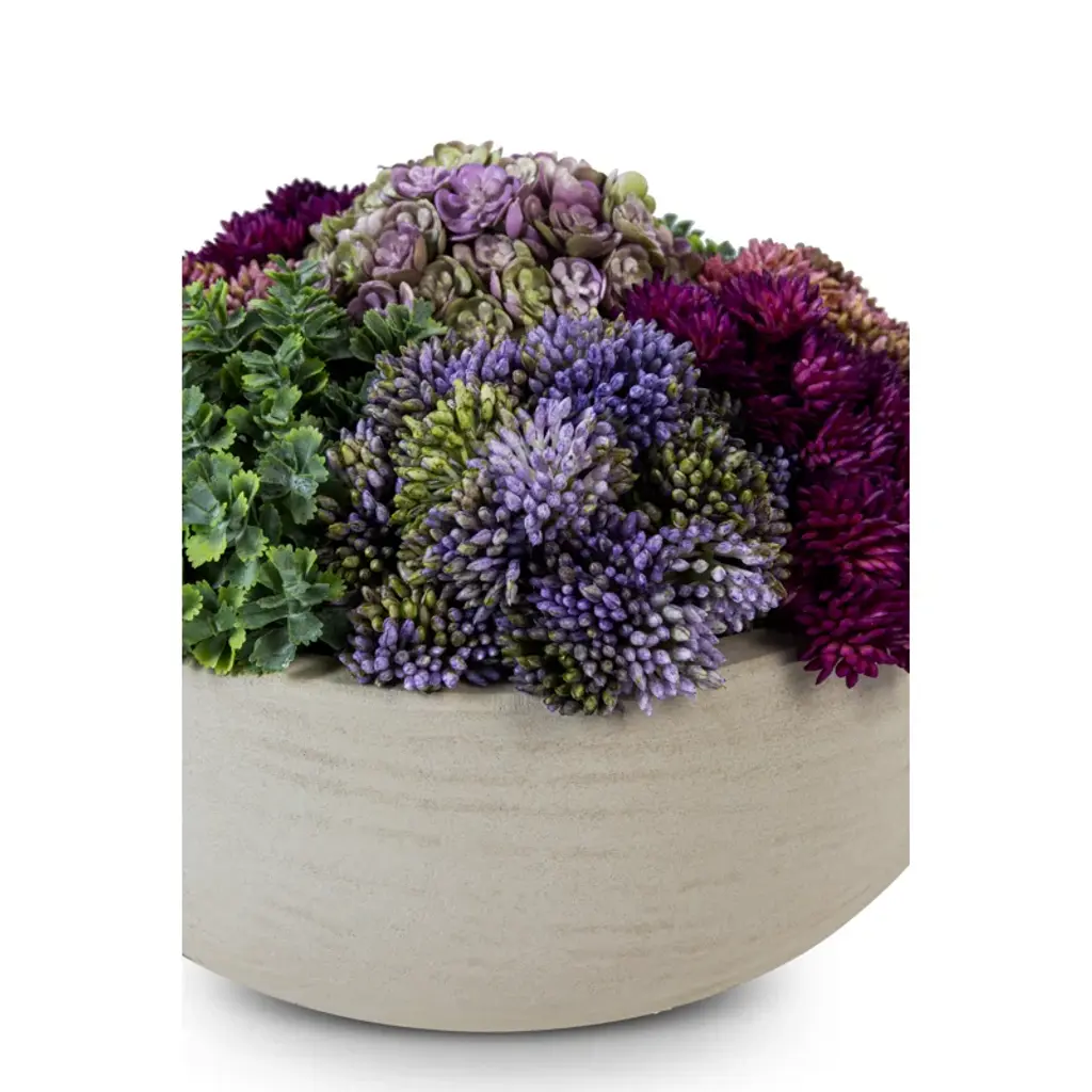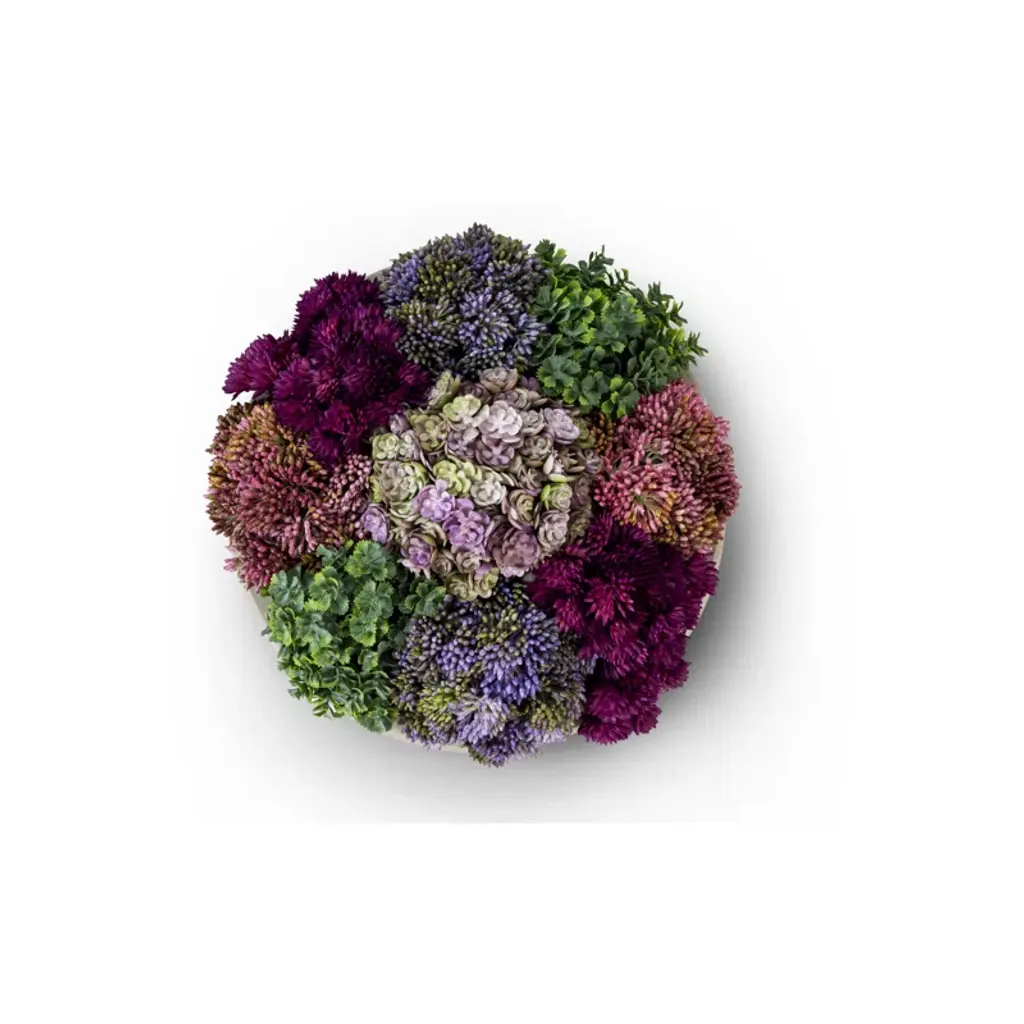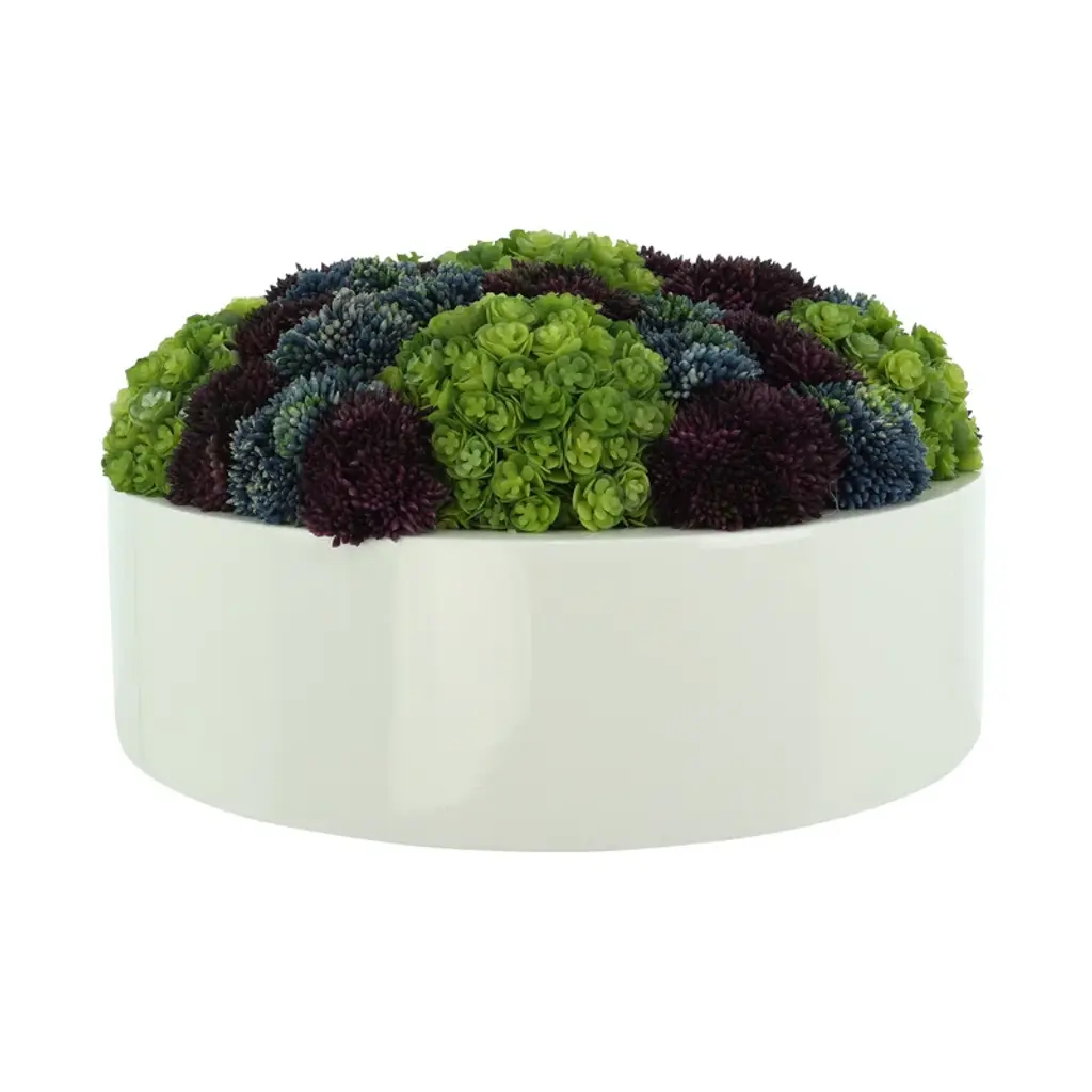 Add a touch of garden-inspired elegance to your décor with our multi colored sedum and allium floral arrangement. For an instant refresh, display this lifelike arrangement on any shelf or table to accent your décor in your home or office. No watering or maintenance needed and your floral arrangement will look lovely all year long.