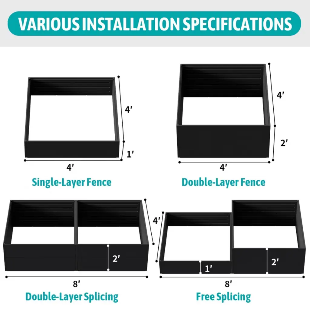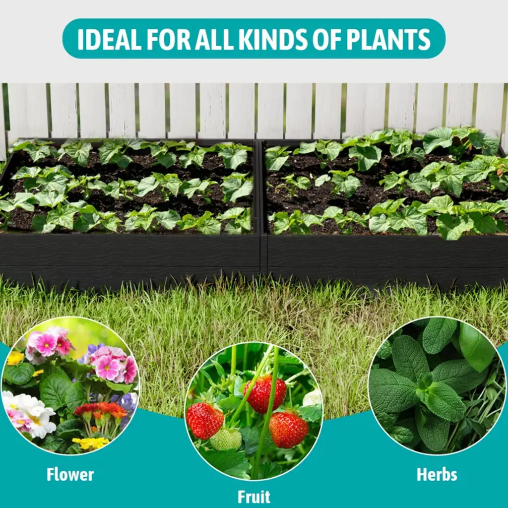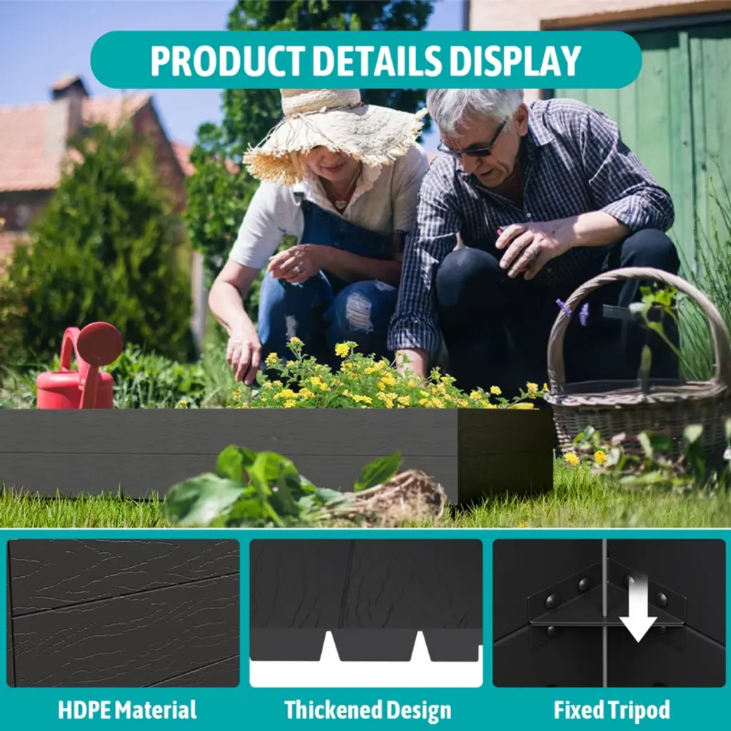 NAYSAYE brings fresh possibilities to your outdoor setup with this stylish and versatile raised garden bed. Designed for growing herbs flowers and vegetables it blends function and charm for a clean organized space. The open bottom promotes healthy root growth while the modular structure fits a range of layouts. Crafted from durable HDPE it handles the elements with ease and doubles as a storage cover or outdoor concealment for added utility.