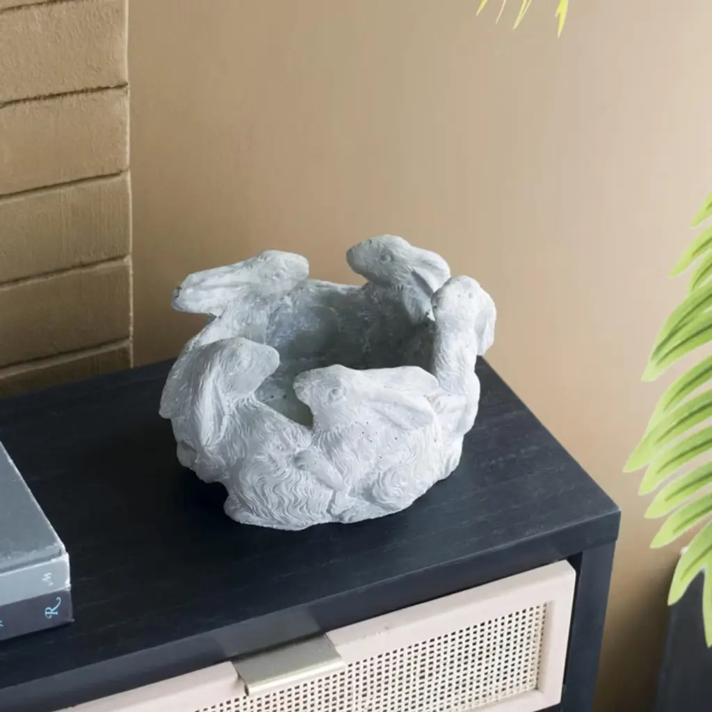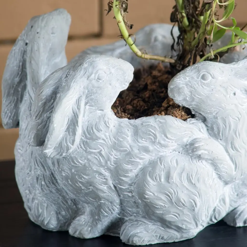 Naysaye Planter 5 Bunny Cement Planter Fun Animal Design For Indoor Outdoor Garden, Gray, 10"*8"*6.5"
