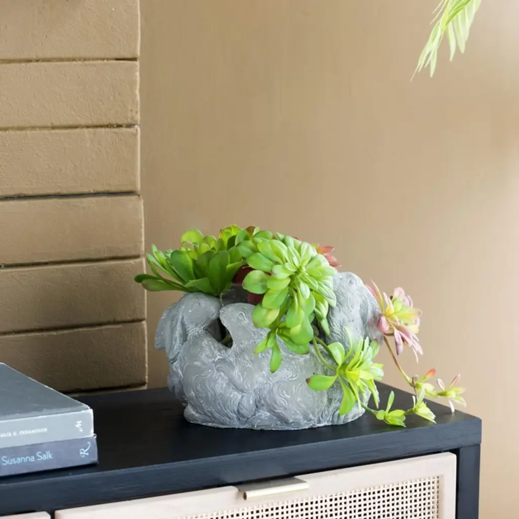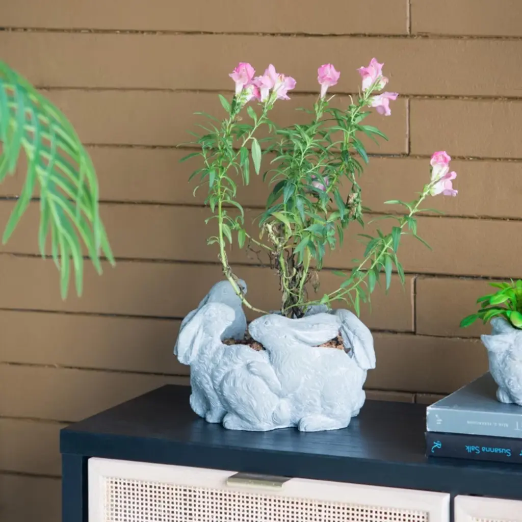 NAYSAYE Planters 5 Bunny Cement Planter brings playful charm to your home or garden with its fun bunny design. Perfect for holding medium-sized plants, this planter adds personality to any space. The durable cement construction ensures it can withstand outdoor elements, while its whimsical design makes it an eye-catching accent piece. Whether placed indoors or outdoors, this bunny planter is sure to be a conversation starter.