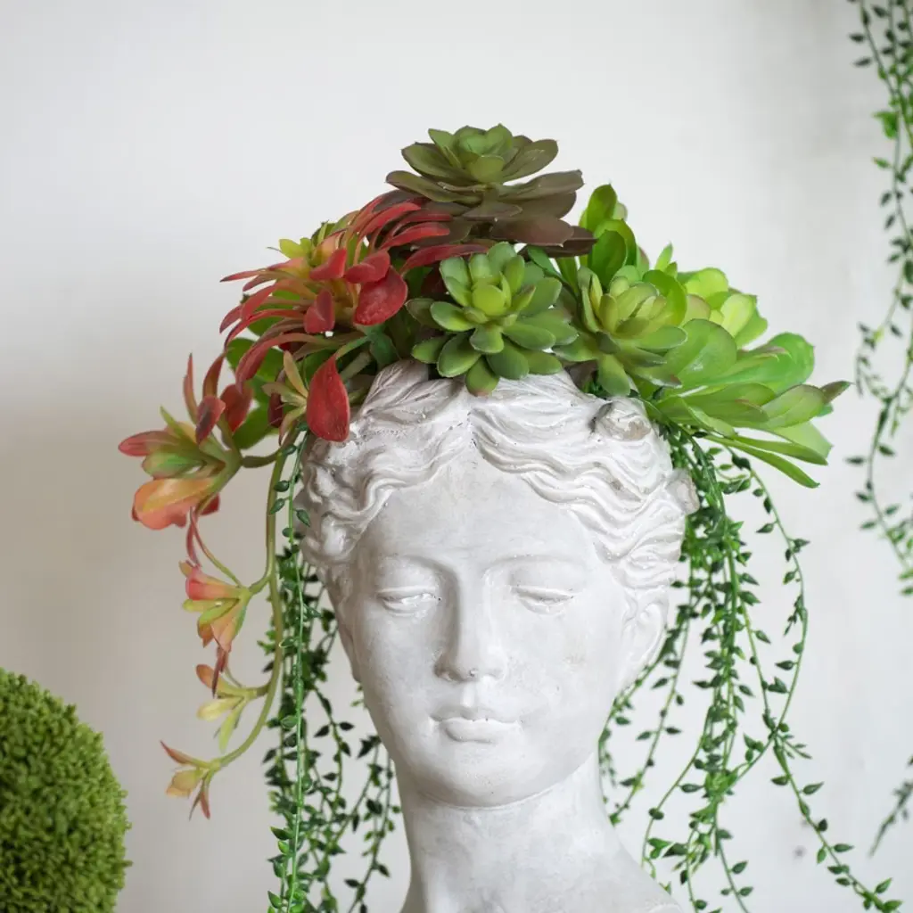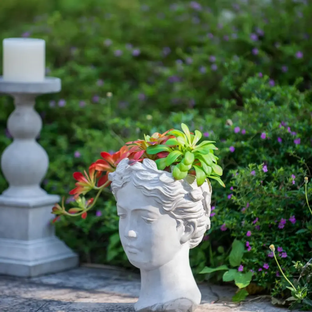 NAYSAYE Planters Greek Style Cement Head Planter combines classic and industrial design, adding an artistic touch to both indoor and outdoor spaces. Made from durable cement, it is weather-resistant and ensures long-lasting use in various environments. The vibrant green shade adds a refreshing pop of color, complementing your plants while enhancing your decor. Ideal for flowers, succulents, and greenery, it elevates any garden or home with style.