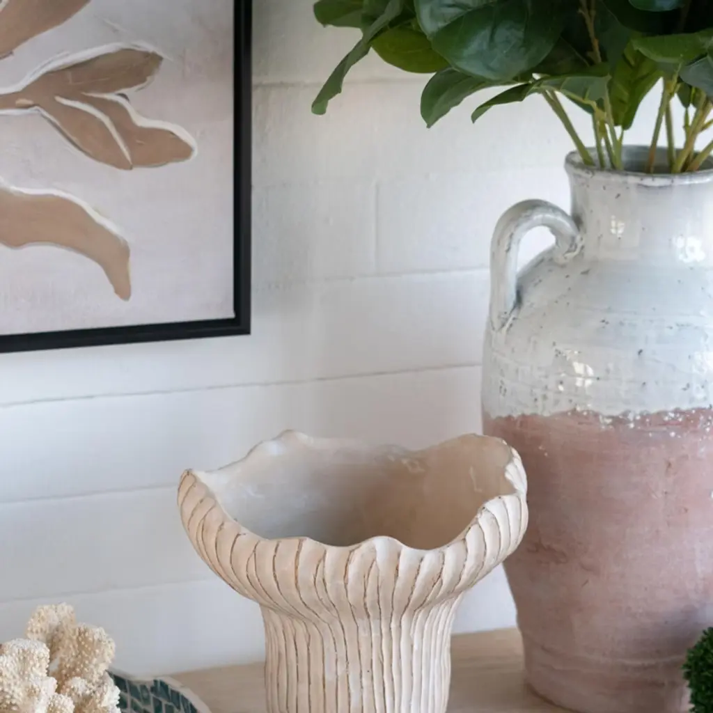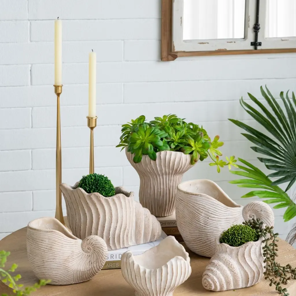 NAYSAYE Planters coral planter brings the peaceful energy of the coast into your home or garden with its intricate coral design and textured beige finish. Perfect for succulents, herbs, or trailing plants, it adds a serene touch to any space. The neutral color effortlessly complements coastal, shabby chic, and bohemian styles. Made from durable sand and cement, this planter is built to withstand the elements while requiring minimal maintenance for long-lasting enjoyment.