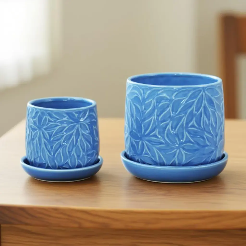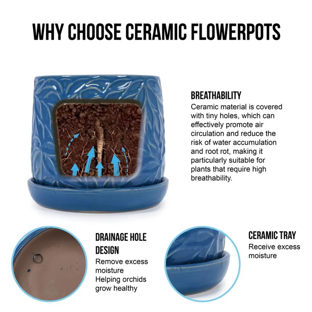 Naysaye Planter Set Of 2 Ceramic Flowerpot Built In Drainage Hole For Indoor Outdoor Garden, Navy Blue, 8.08"*8.08"*7.09"