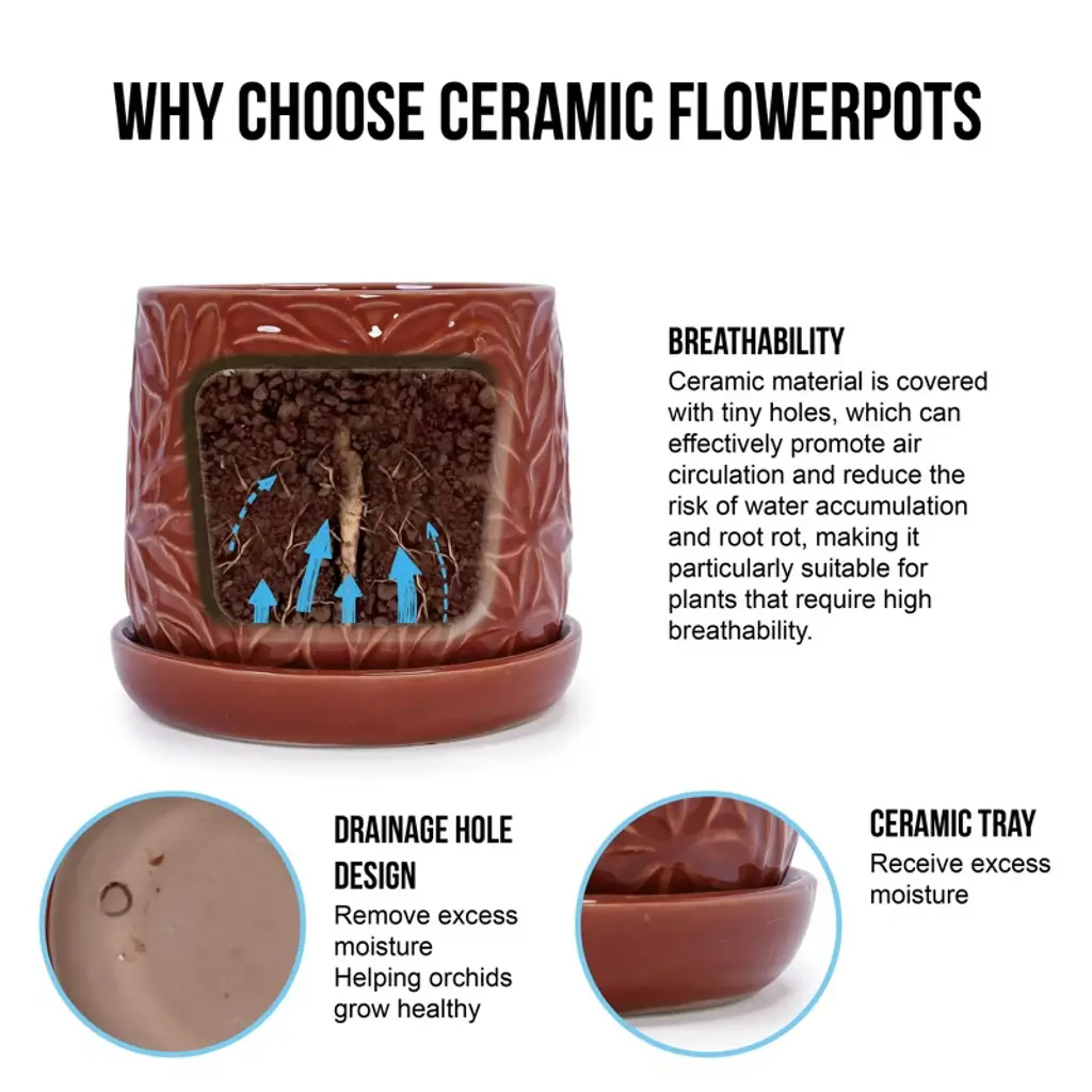 Naysaye Planter Set Of 2 Ceramic Flowerpot Sleek Leaves Design For Indoor Outdoor Garden, Red, 8.08"*8.08"*7.09"
