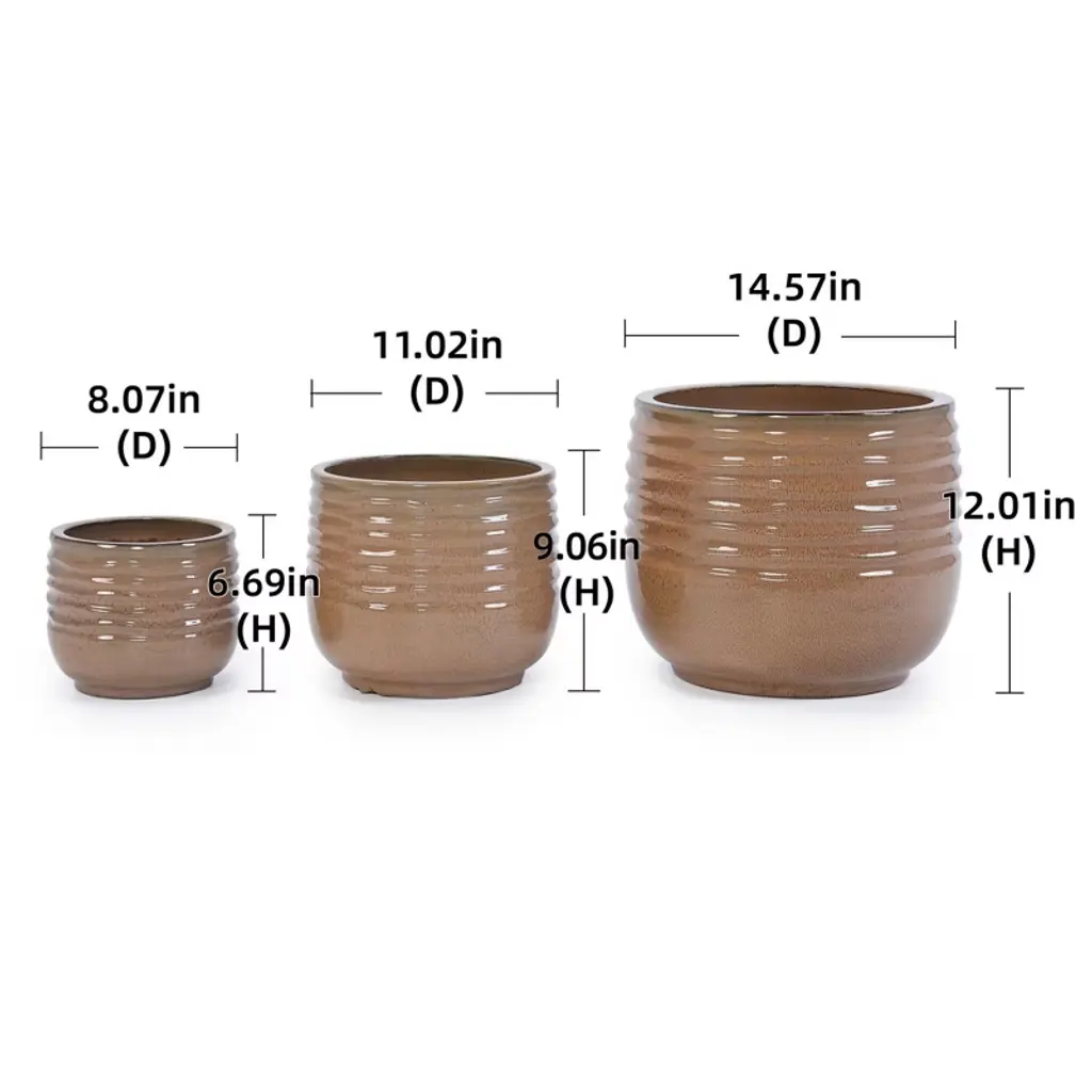 Naysaye Planter Set Of 3 Ceramic Flowerpot Modern Sleek Design For Indoor Outdoor Garden, Bronze, 14.6"*14.6"*12.1"