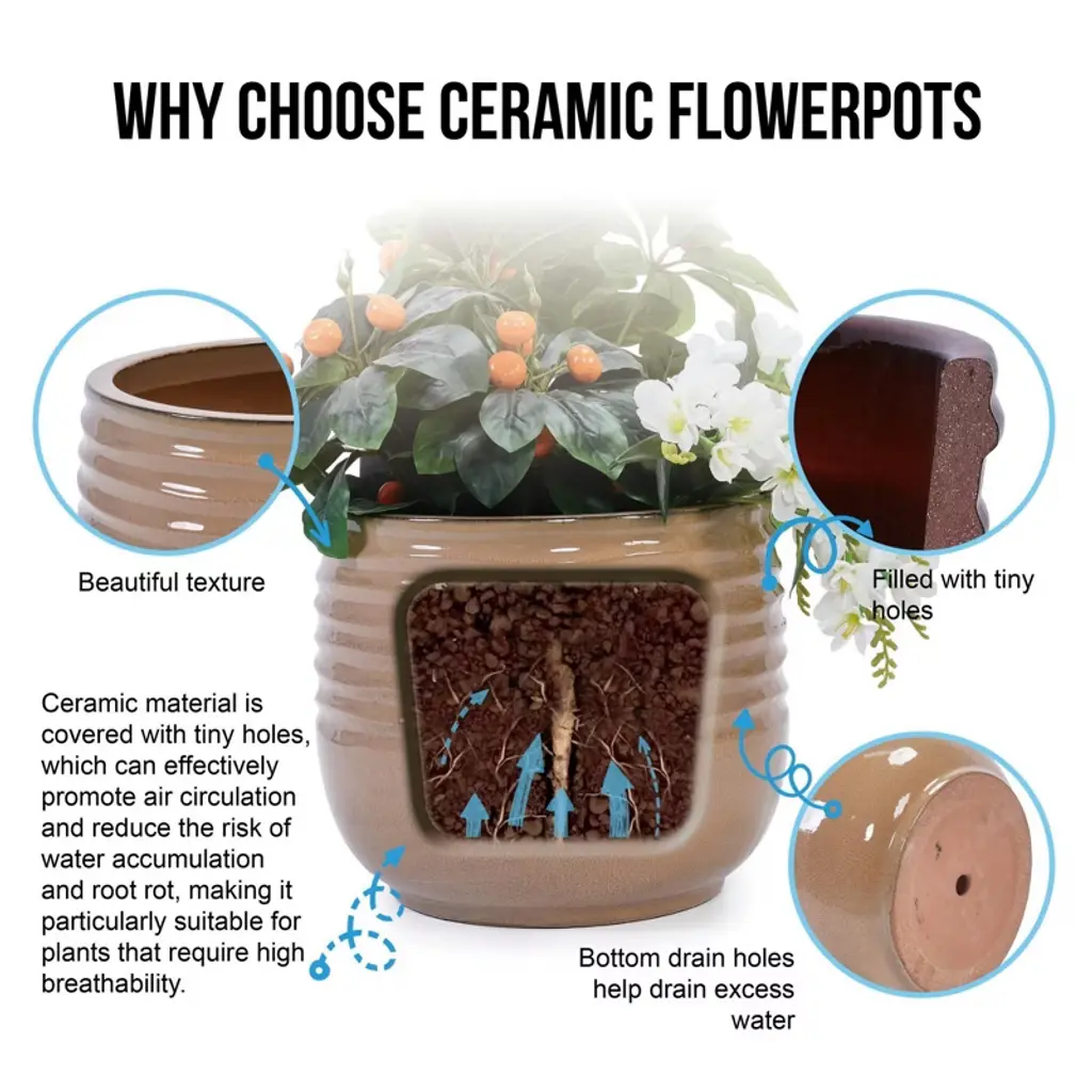 NAYSAYE Planters Ceramic Flowerpot brings a touch of modern elegance to any space. With its sleek glossy finish, this planter complements both contemporary and traditional decor. Designed with a built-in drainage hole, it promotes healthy plant growth while preventing overwatering. Crafted from premium ceramic, it is durable enough to withstand various weather conditions, making it perfect for year-round use in both indoor and outdoor settings.