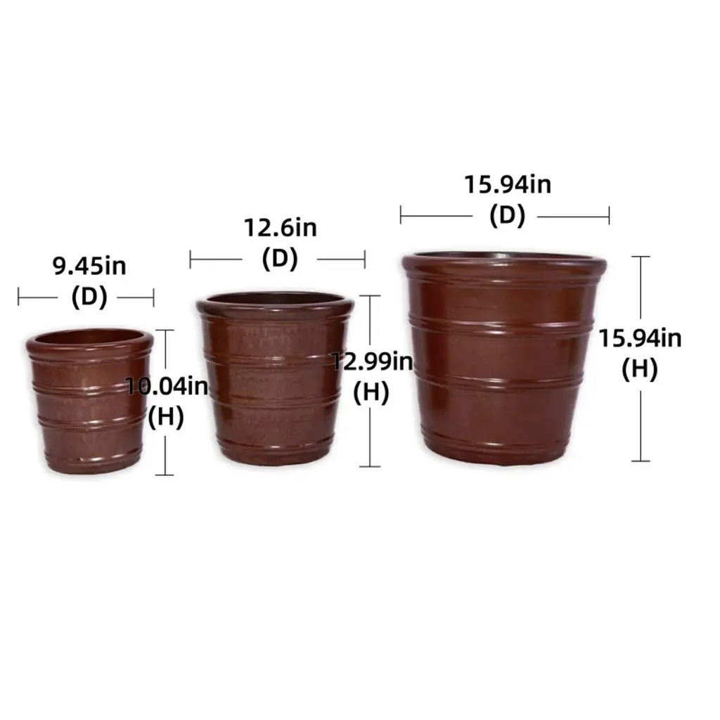 Naysaye Planter Set Of 3 Ceramic Flowerpot Sleek Glossy Design For Indoor Outdoor Garden, Red, 16.2"*16.2"*16.2"