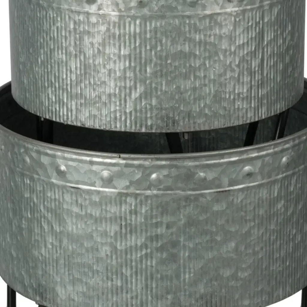 NAYSAYE Planters Set of 3 Huxley Metal Decorative Pots brings industrial charm to your space with its sleek galvanized metal finish and elegant black hairpin legs. Designed for both indoor and outdoor use, these pots provide a stylish and durable foundation for plants, flowers, or organizing household items. The nesting design saves valuable storage space when not in use, making them a versatile addition to any modern garden or home decor.