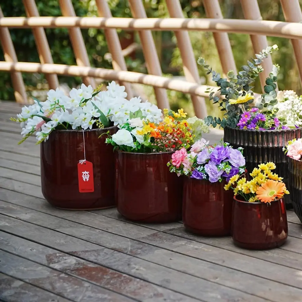 Naysaye Planter Set Of 4 Ceramic Planter Pot Glossy Modern Finish For Indoor Outdoor Garden, Red, 13.8"*13.8"*11.9"