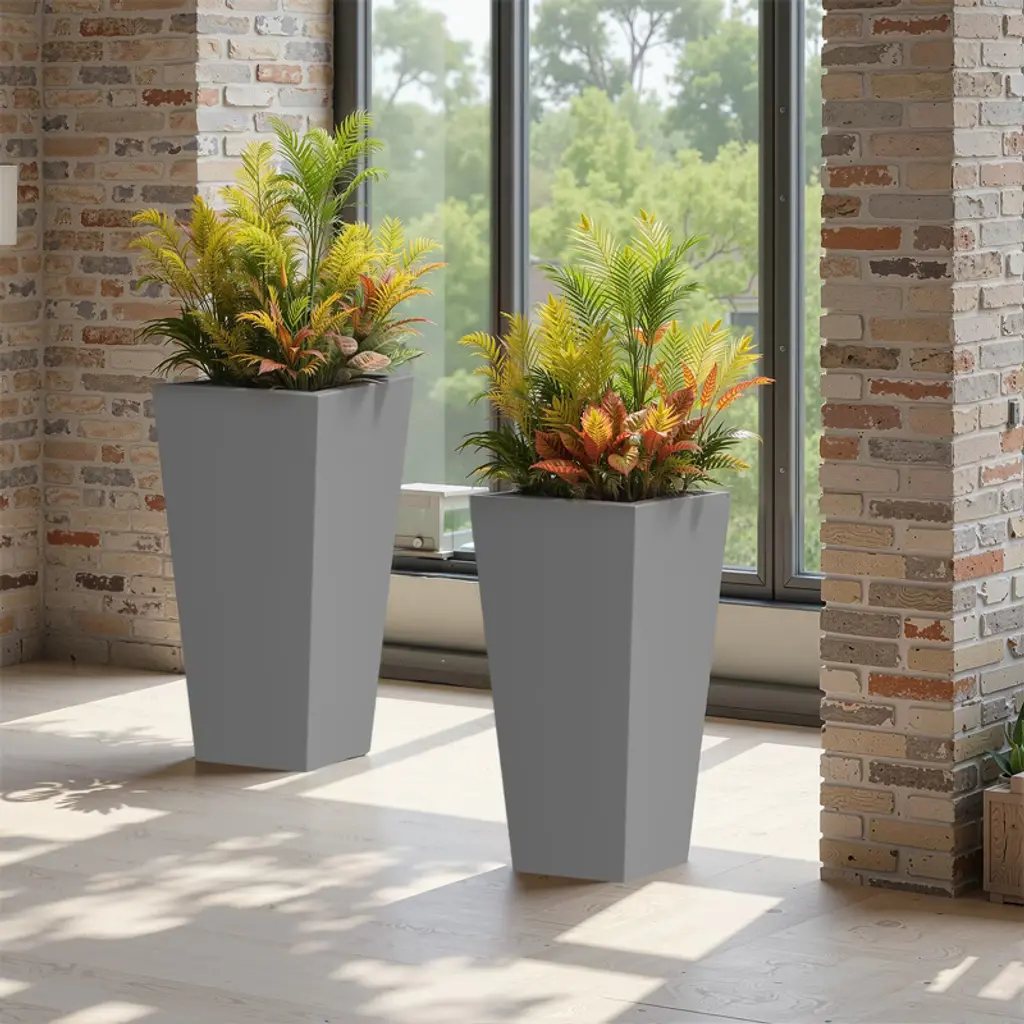 NAYSAYE Planters square planter with automatic watering system makes caring for your plants easier than ever. The built-in system adjusts watering based on soil humidity, ensuring your plants stay hydrated with minimal effort. Featuring a realistic imitation rattan design, it offers both durability and elegance. The sleek black exterior complements any space, while the two-pack design allows for effortless decoration in both indoor and outdoor areas.