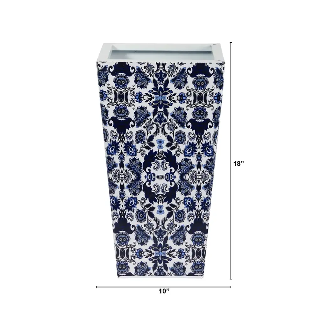 Your plants look lonely. House them in a hand-painted blue and white planter. The intricate detailing adds an artistic flair, while the blue and white color brings refined luxury to any space. Standing 18in., this planter will make your plant taller; consider adding some moss for a realistic look. No drainage holes..