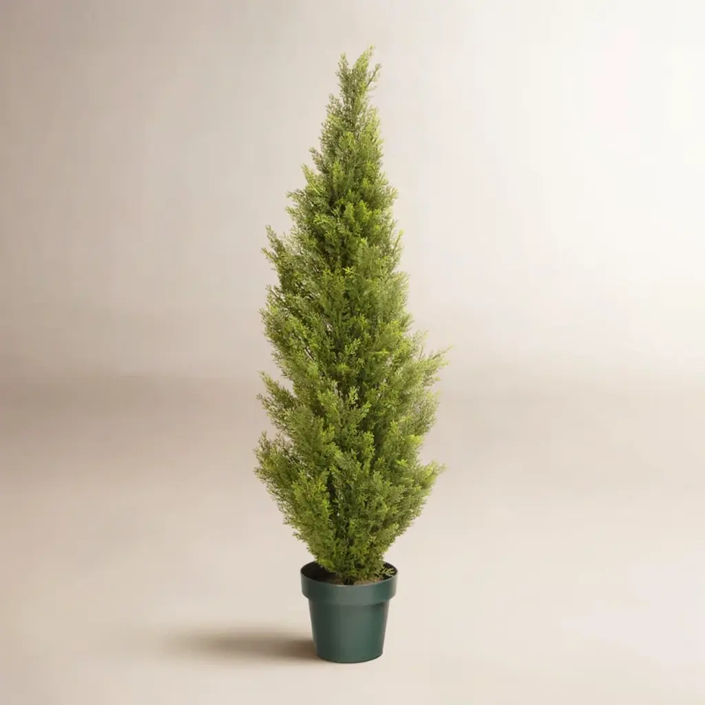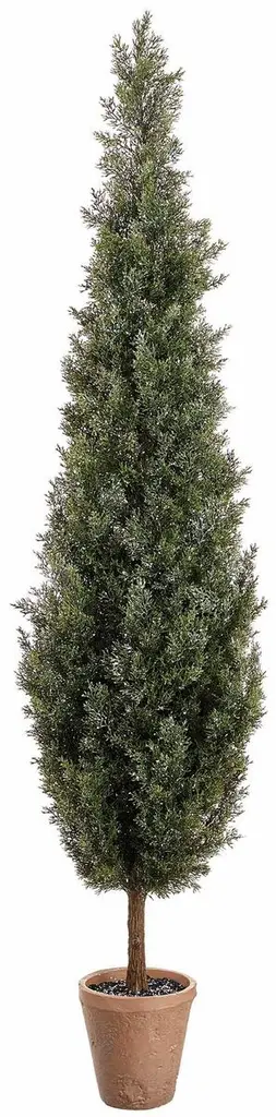 Standing gracefully in an included decorative planter, this artificial 27e mini cedar pine tree, with an abundant amount of green pine needles, will brighten any dull corners or wasted spaces in your home. Flaunting its realistic appearance, this ornament will bring the warmth of the sun and the feel of the forest indoors. Place it near a woven-wicker chair or basket for a touch of coastal appeal.