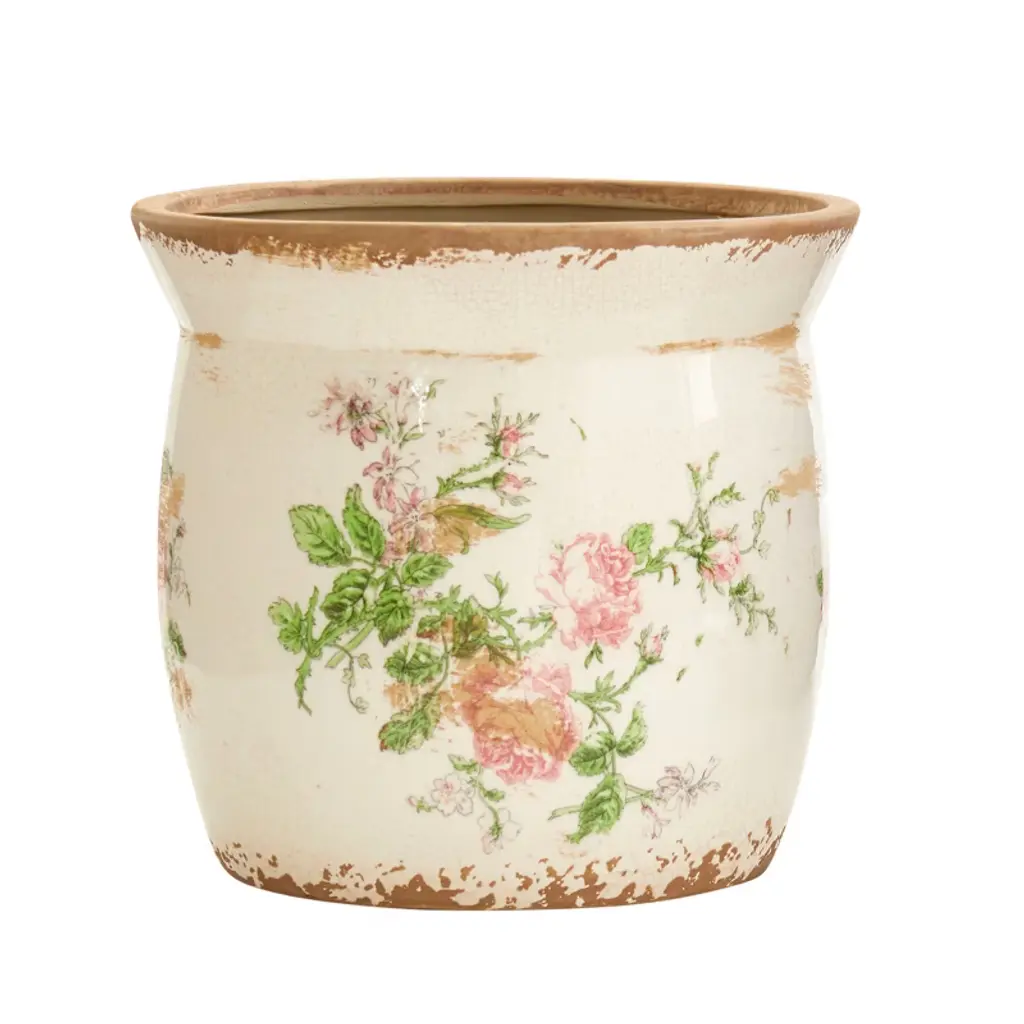 Looks like you just walked into a rustic, antique store with this floral design vase. Artisanal in design, bring cozy, homey vibes with the floral pattern against a rugged square-like silhouette. 7” in width, pair with your favorite fake flowers for a faux-bulous arrangement. Have some fun and DIY your dream arrangement. No drainage hole and for indoor use only..