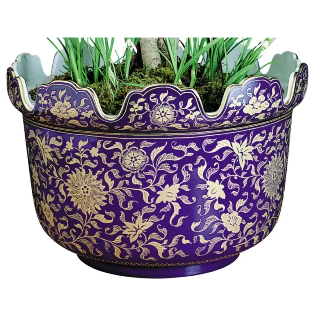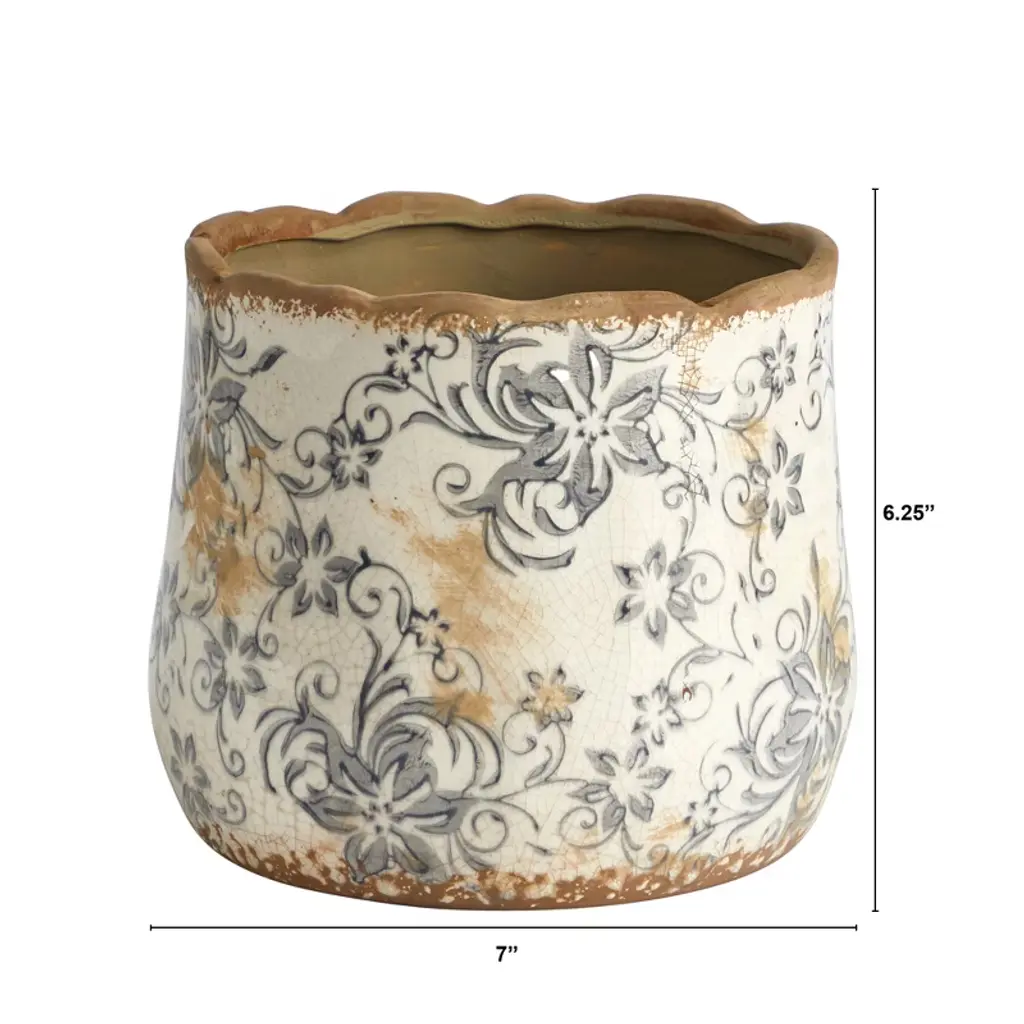 Nearly Natural 7-in Tuscan Ceramic Gray Scroll Planter
