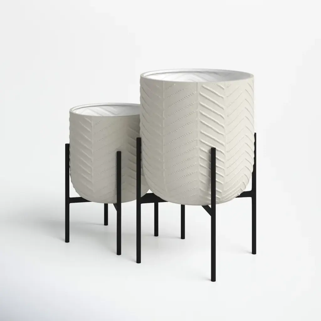 The juxtaposition of colors and materials as seen on this set of plant holders makes it a great addition to spaces