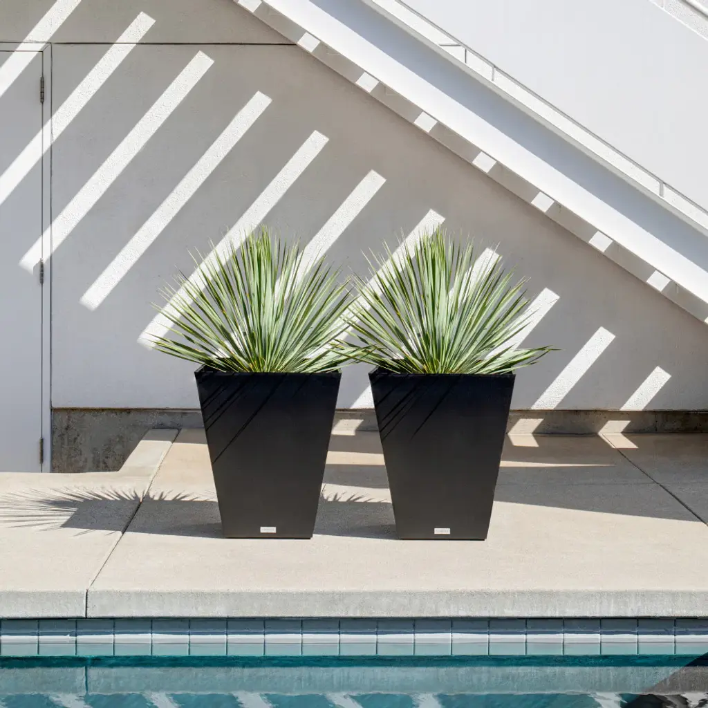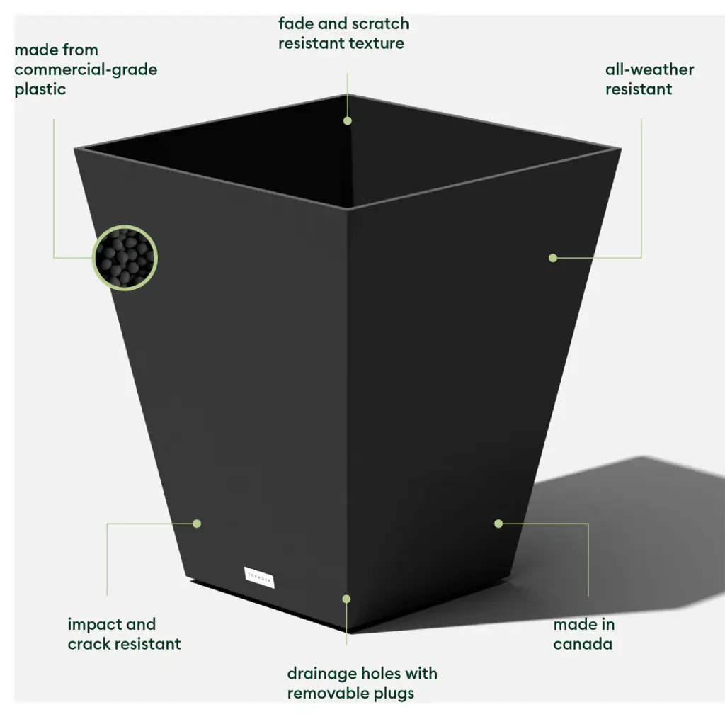 Clean and simple, the Nobleton design is the perfect piece to refresh an empty corner or anchor small or large plants alike. Featuring a subtle marbled finish and a sleek, contemporary square tapered design, the Nobleton planter is ideal as a poolside accent or as a part of a group of planters. Molded from a patented plastic composite, all Veradek planters are extremely durable and designed to withstand the elements - winter or summer. Nobleton planters are flexible, impact resistant, sturdy yet lightweight and specifically treated with UV inhibitors to minimize fading. with a Veradek product, you can rest assured that you are receiving the perfect balance of design, convenience and durability.