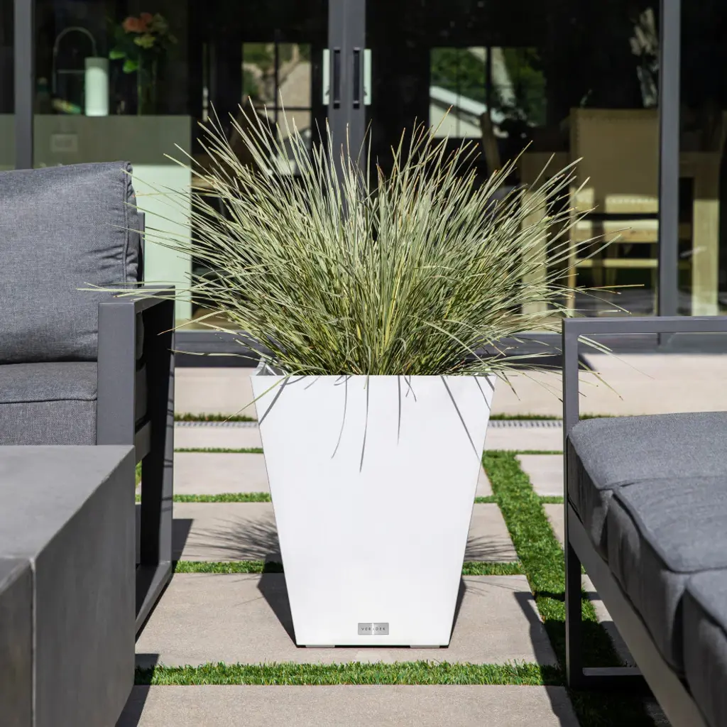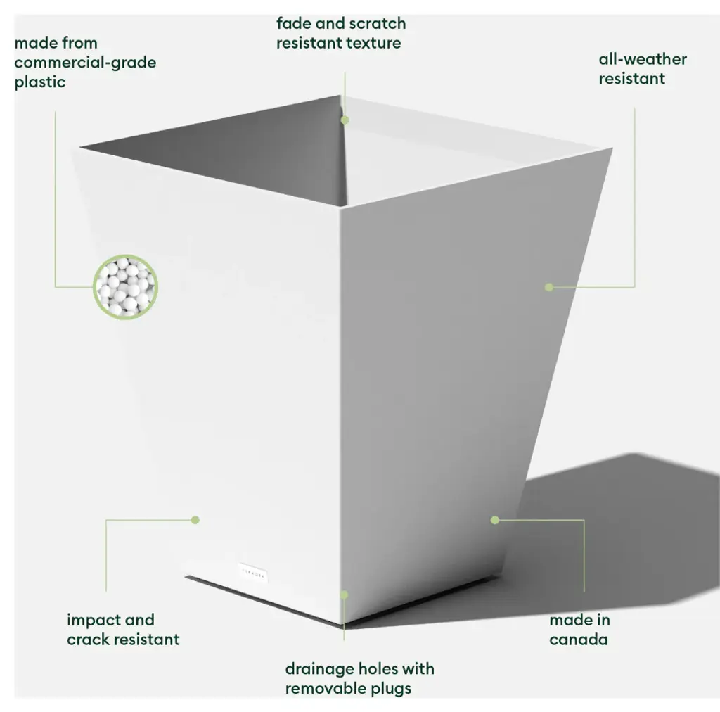 Clean and simple, the Nobleton design is the perfect piece to refresh an empty corner or anchor small or large plants alike. Featuring a subtle marbled finish and a sleek, contemporary square tapered design, the Nobleton planter is ideal as a poolside accent or as a part of a group of planters. Molded from a patented plastic composite, all Veradek planters are extremely durable and designed to withstand the elements - winter or summer. Nobleton planters are flexible, impact resistant, sturdy yet lightweight and specifically treated with UV inhibitors to minimize fading. with a Veradek product, you can rest assured that you are receiving the perfect balance of design, convenience and durability.