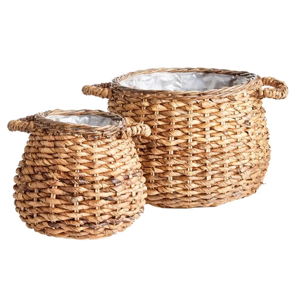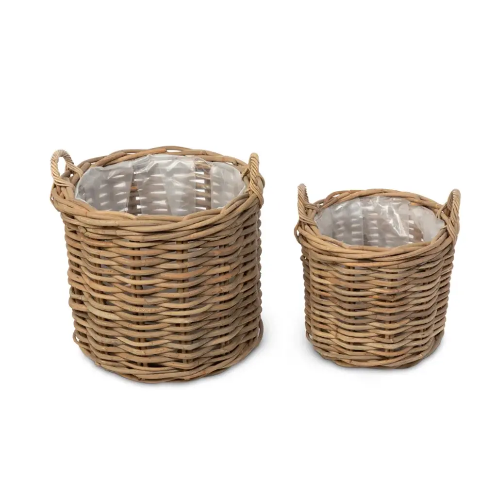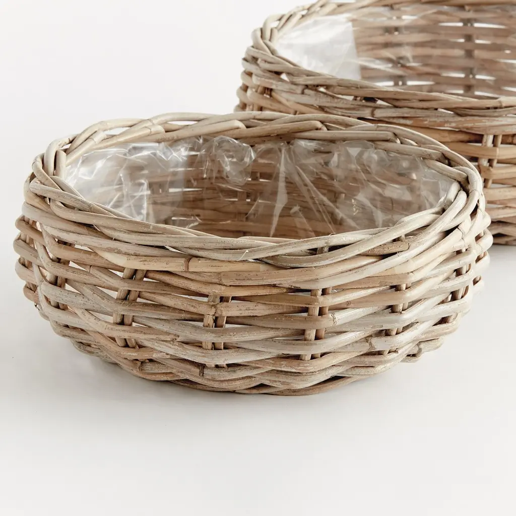 Norman Traditional Natural Woven Rattan Round Decorative Planter - Set Of 2