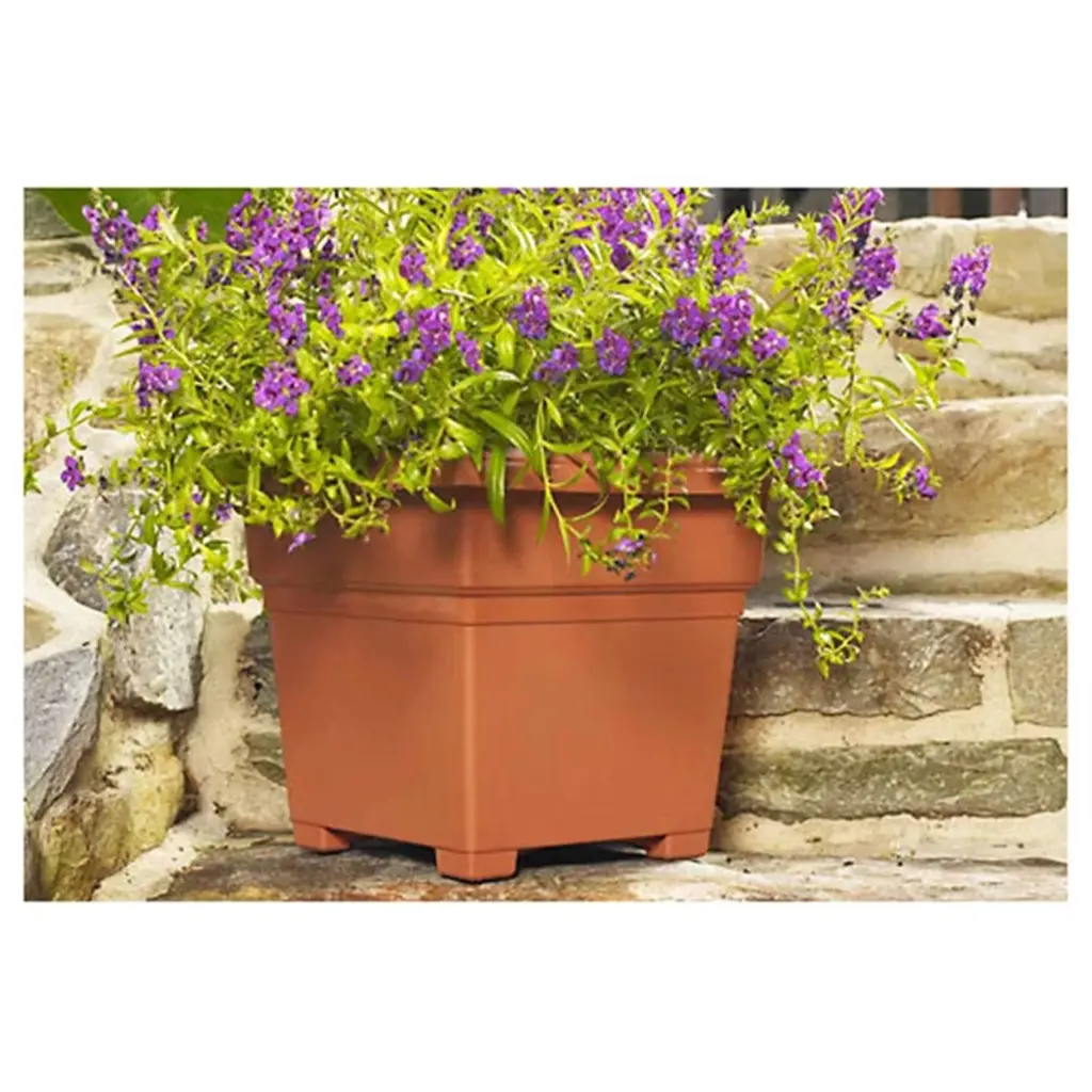 Features a deep root zone, helping plants stay vibrant and healthy. The classically-designed Countryside Tub Planters feature a matte finish with satin banding to pair perfectly with your favorite indoor and outdoor plants. These deep-vessel square pots give plants, small trees, and shrubs room to grow stronger and healthier roots. To prevent fading and ensure longevity, these planters are constructed with a durable blend of impact-resistant resin. Placed these planters indoors or outdoors to accentuate your décor. When using outdoors, before planting, easily drill holes at the marked areas on the base of the planter to allow excess water to drain from the planter. For added functionality, built-in feet lift the planters slightly off the ground to provide better airflow to the soil and reduce the chance of water pooling under the planter.