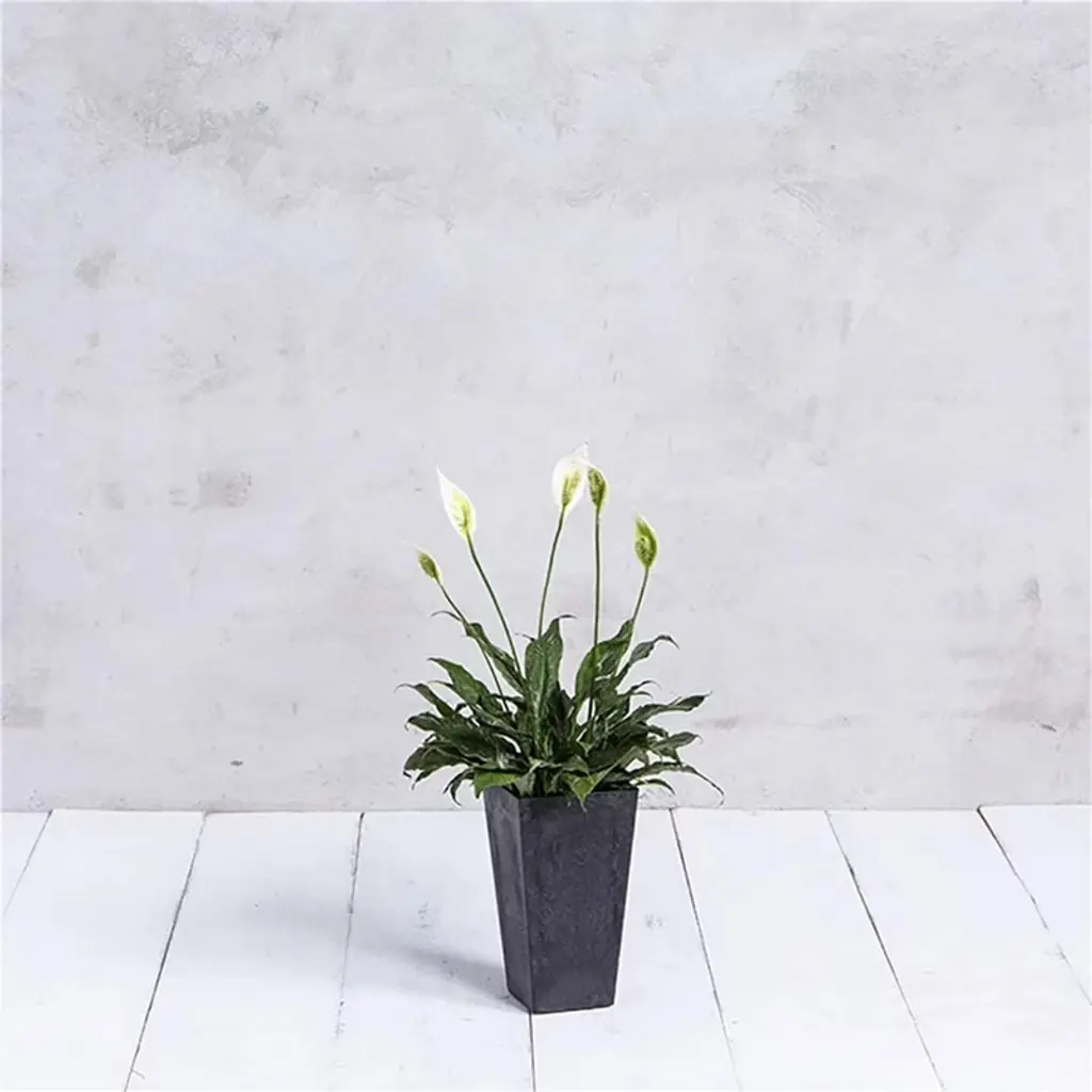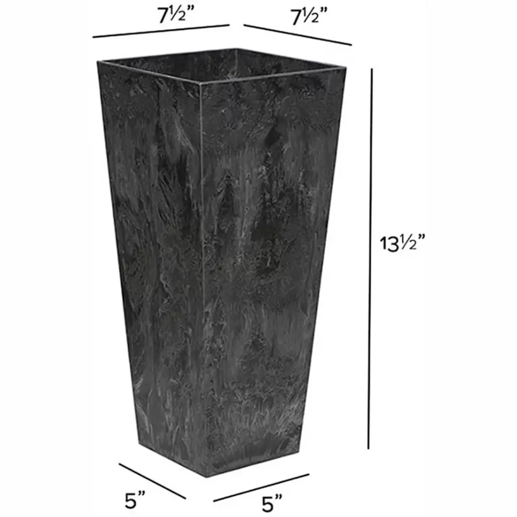 Novelty Ella Artstone Tall Square Plastic Resin Planter With Water Minder System, Black 13.5"