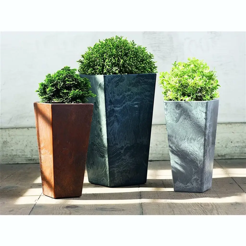 The Ella Tall Planter is a visually stunning statement piece that blends perfectly with sophisticated indoor or outdoor décor. Its modern, tapered, and unique marbled design is perfect for entryways, porches, patios, and decks. Each planter is constructed with Artstone, a blend of UV-stabilized, BPA-free, frost-resistant, high-grade stone and resin. In addition to its durability and elegance, this tall square planter has an integrated Water-Minder, a self-watering system that provides continual hydration and proper drainage to keep plants green and lush. These deep-vessel planters can accommodate larger plants, dwarf trees, and shrubbery. Showcase your seasonal arrangements with these beautiful, lightweight, durable, and thoughtfully designed planters.